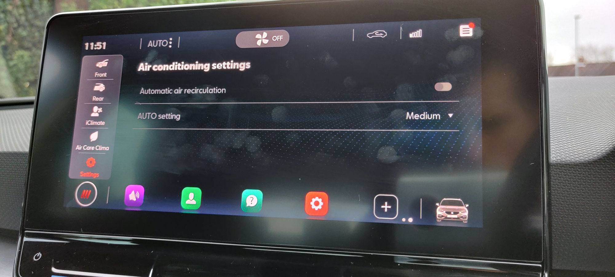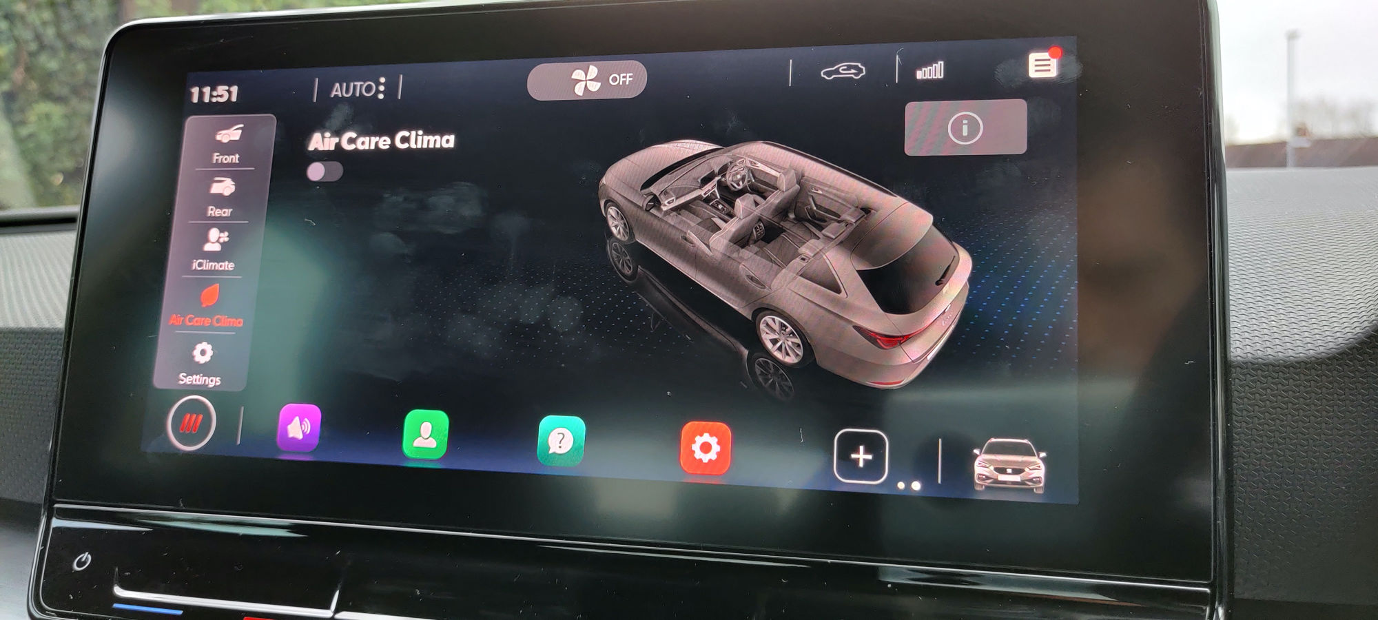 I must admit the next option is in the MK3 Leon, but I’ve never seen/used it, Air Care Clima is an option you can enable to clear the air in the car of smells, pollen, and pollution. I couldn’t tell if it’s doing anything as I don’t have hay fever and I live in the sticks so pollution isn’t so much of an issue, also during my time the farmers didn’t drop any lovely smelling manure so I couldn’t test this to its full potential.