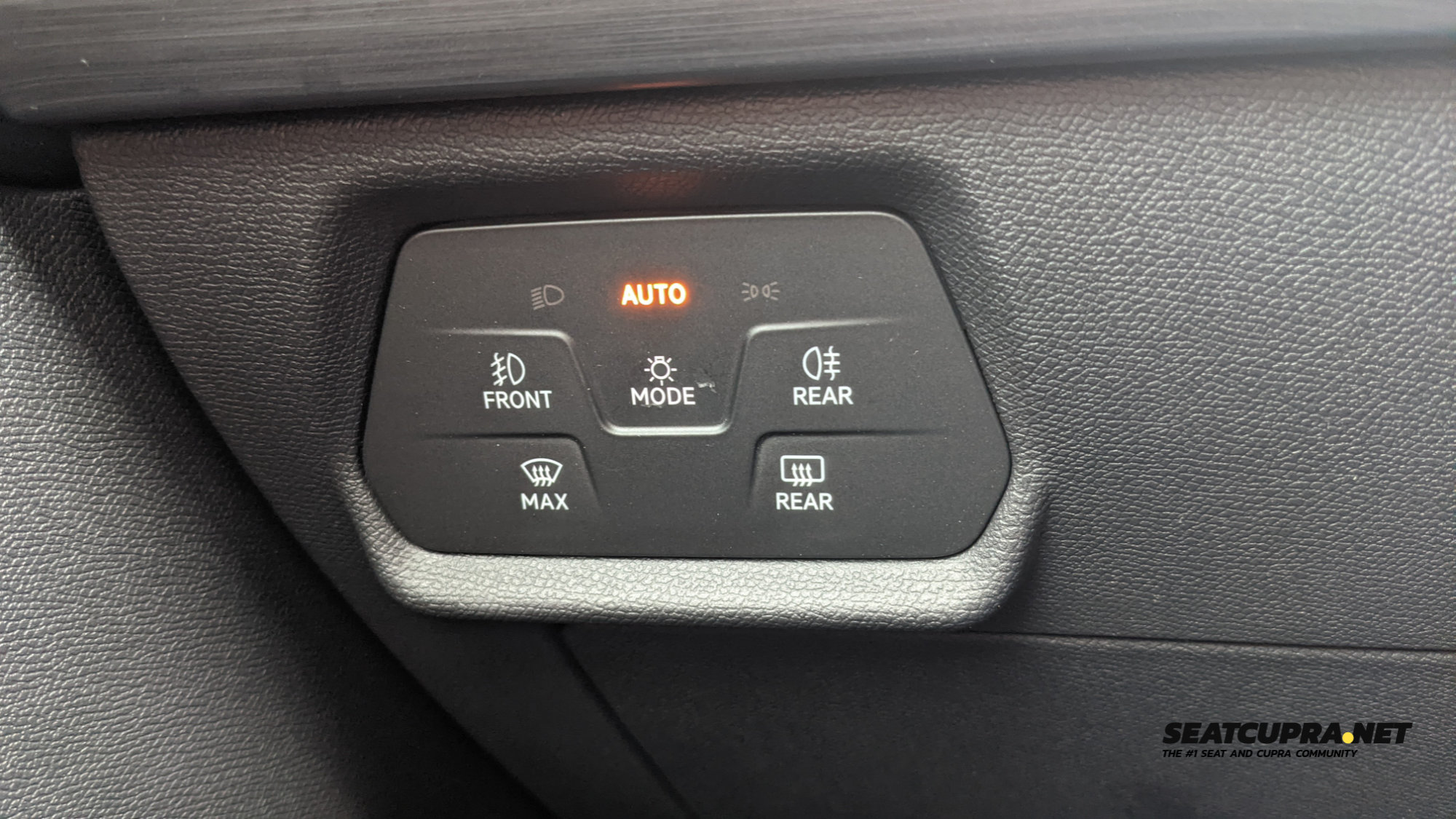The lighting buttons are the same as the standard Leon and Formentor again – terrible touch control plastic. The part looks like it cost about 50p to make. Give us proper buttons back! (ok button rant over I promise).