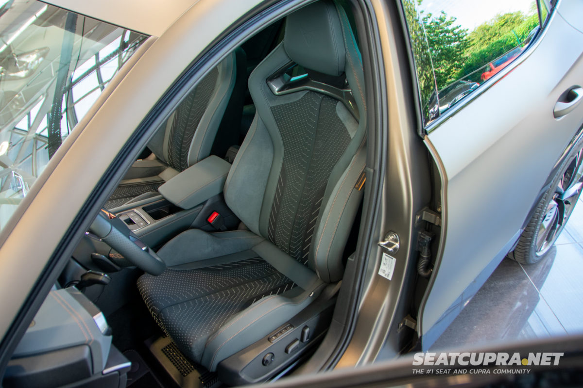 CUP Bucket seats (carbon fibre backs) in textile Turbine and sides in PVC Enceladus grey" option.