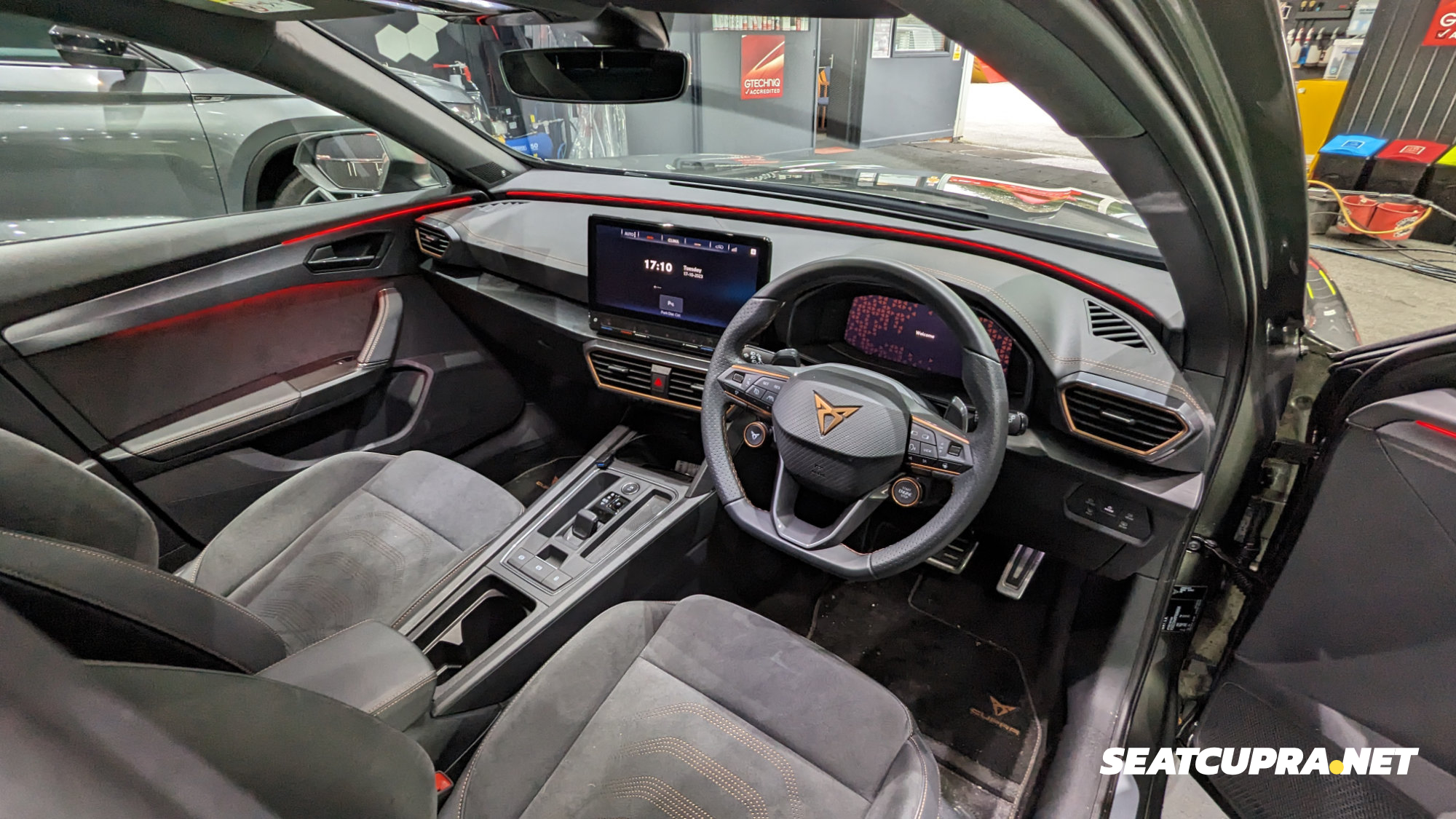 Priced from £48,270 OTR (the VZ3 is £47,515), CUPRA declares this has “enhanced styling and racing look with 19-inch matte black alloys and detailing, black Dinamica bucket seats and a panoramic sunroof.”
