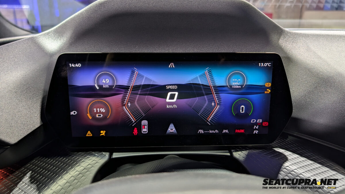 The dashboard layout itself looks clean and pretty intuitive on first inspection. The digital cockpit is larger than we have seen in some other electric CUPRA models, and the main infotainment screen is also a good size. The system now runs on Android-based software, although it still visually feels familiar to other recent CUPRA products.