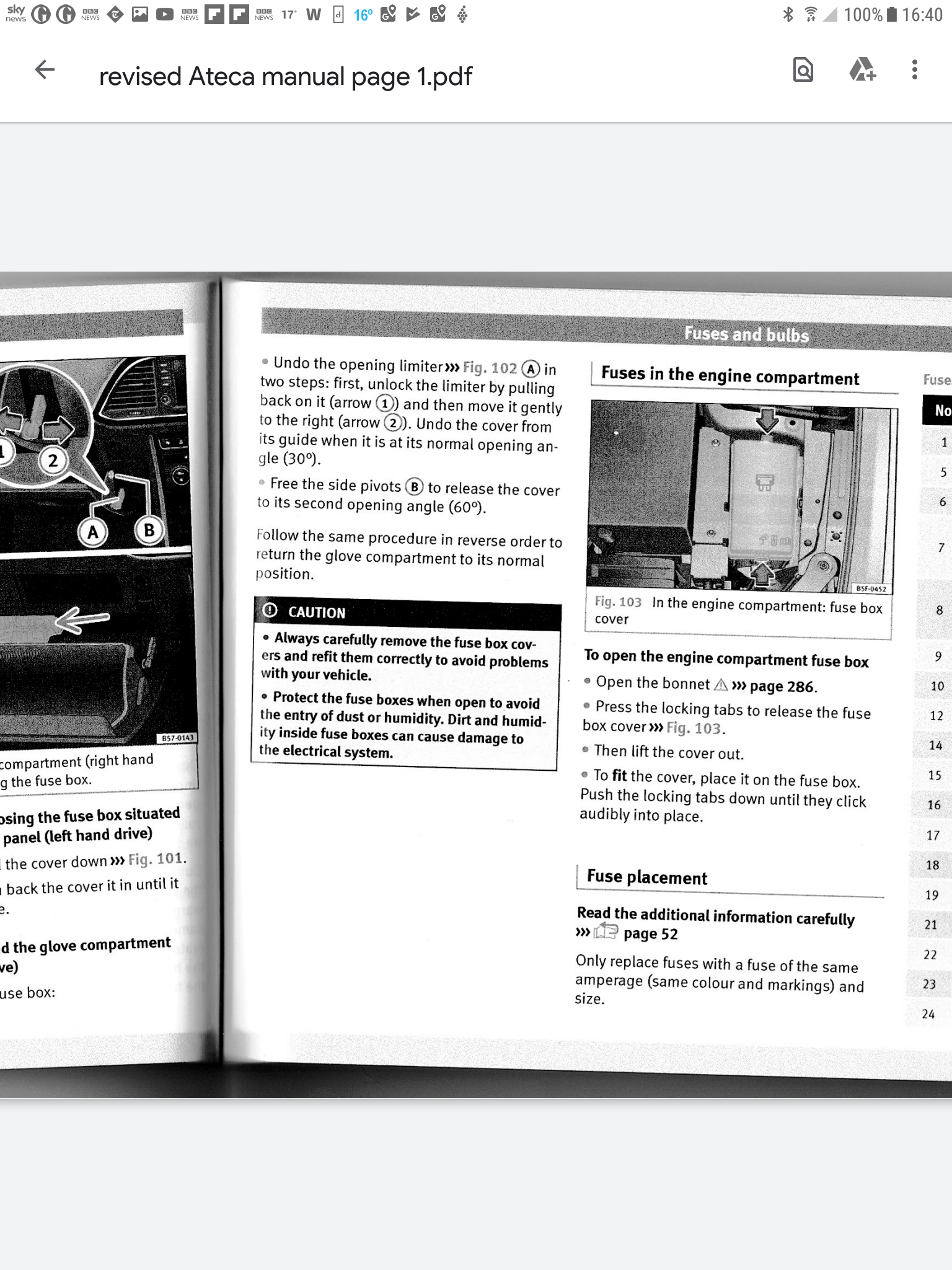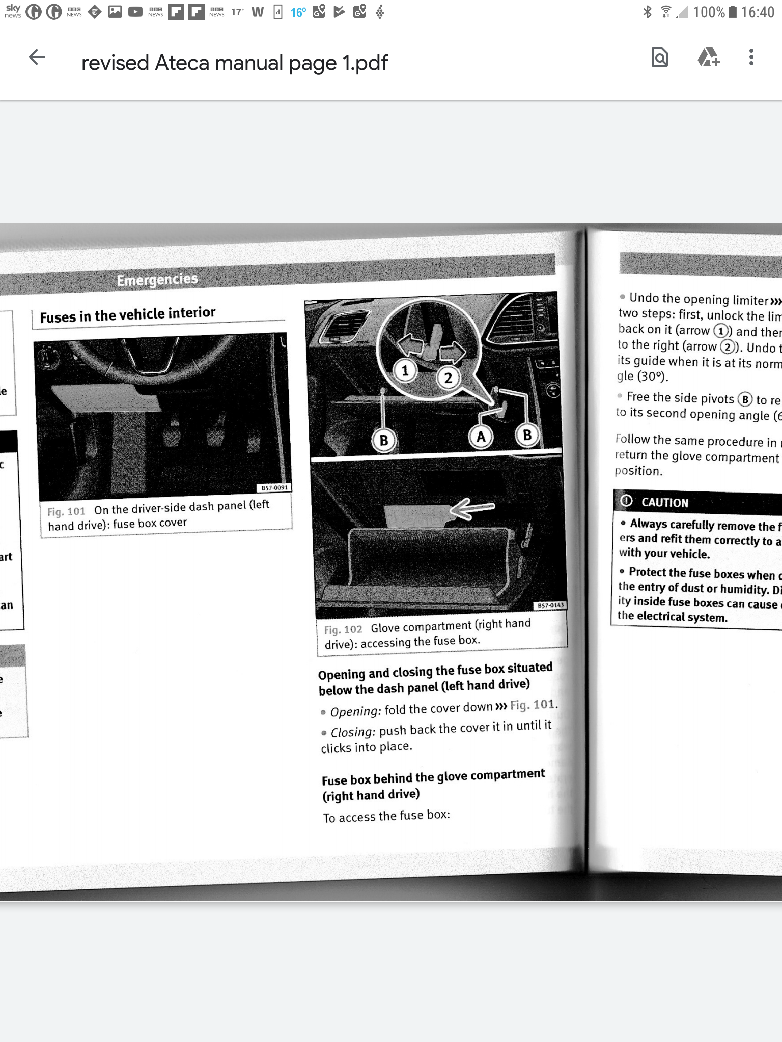 People new to VAG cars wonder where the fuse box is in RHD cars in the passenger area. The Ateca like the Tiguan, Kodiak, Karoq etc it is hidden behind the glove box. It's done to preserve the cabling in the car so the runs are the same as the LHD (assume) but makes it tricky to get at the box. A "dampner" has to be removed so that the glovebox drops right down to reveal the fuse box.