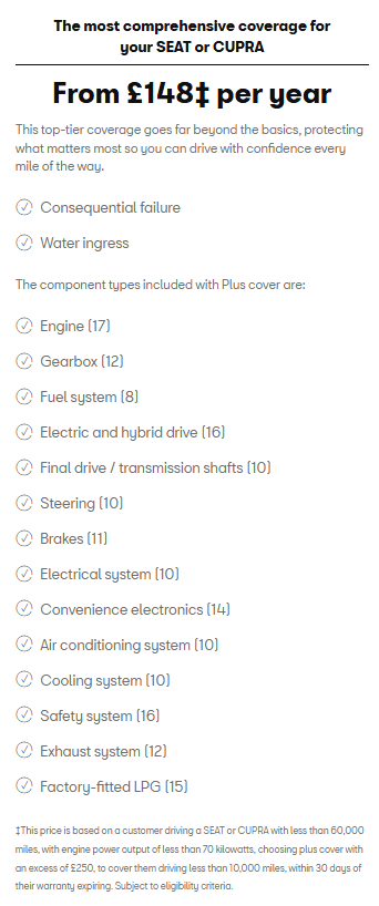 Is your existing warranty about to expire? Is your SEAT or CUPRA out of warranty? Our 12-month policy offers the reassurance that, should a covered component suffer sudden and unexpected failure, you’ll be insured.