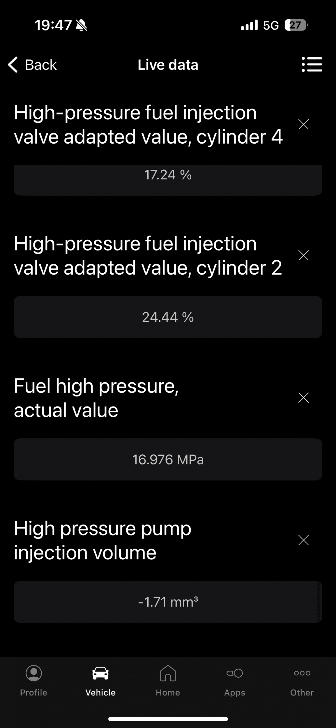 regarding the motorway test, would that be from cold?Does your coolant temperature/ambient temperature and fuel pressure look 'sensible'?
