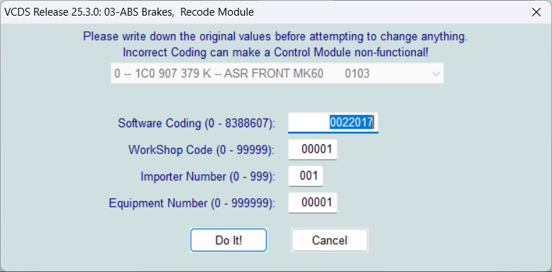 Hi, many thanks for the quick reply, much appreciated. The part number on my module is 1J0 614 417 D. I'll send the code on for them to try.