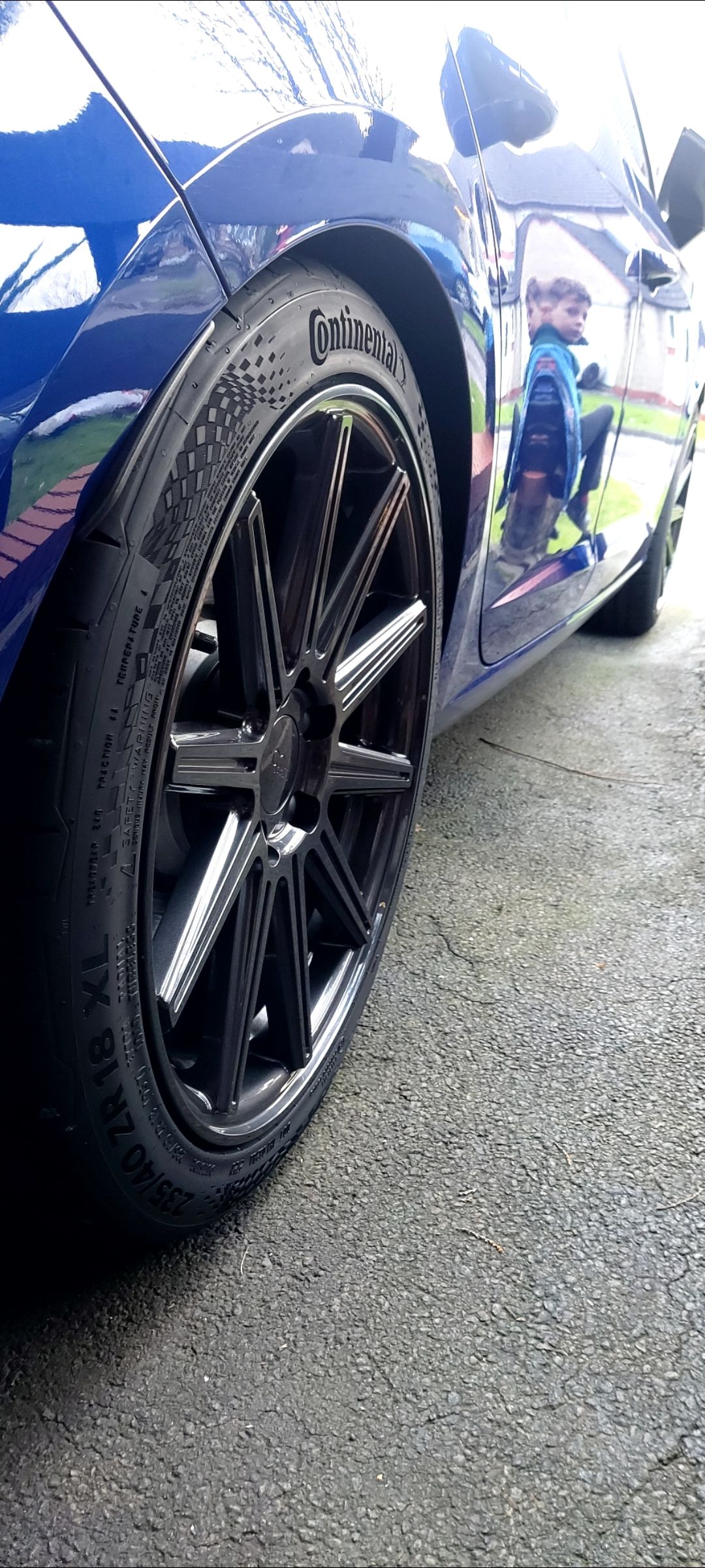 Well they rubbed on speed bumps on full compression ,so I swapped them out for 235 40 18 contisportcontact7 , no rubbing and drives so much better on these to 19s , cost me a small fortune in tyres lol. Pics with tyre wall dressing are the 245, with tyre dressing are the 235, selling the x4 245 conti sport contact7 for £420 they have 12 miles on them ????