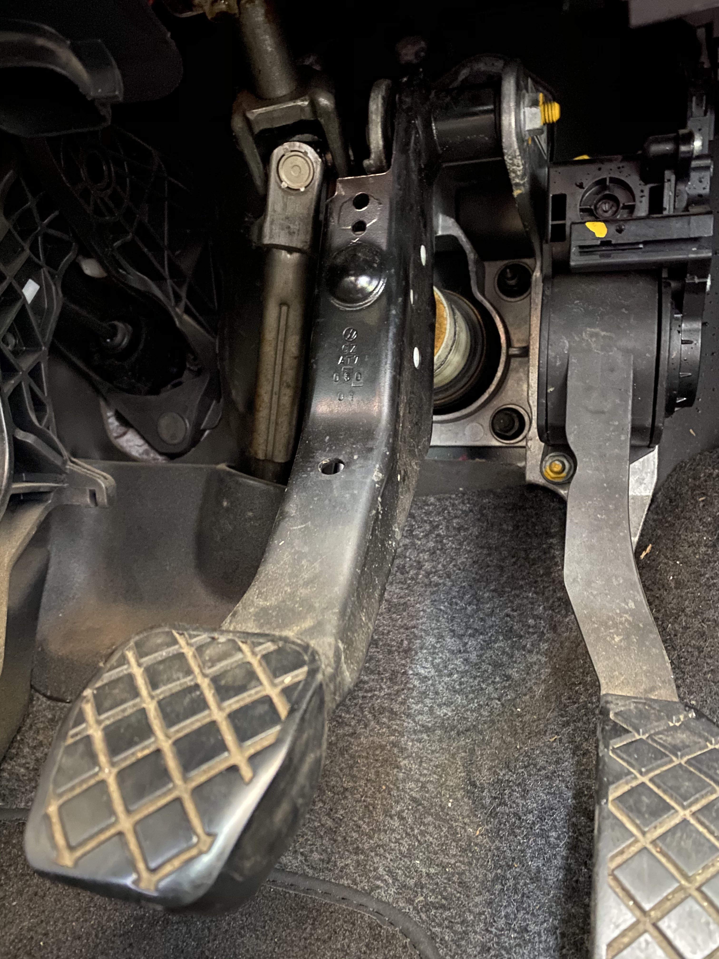 Recently bought my Daughter a Seat Ibiza EcoMotive 1.4 Diesel. A couple of days ago the brake lights decided to stay on , all the time as son as you turn the ignition on, and driving along. I have had a good look online, and everything point to a Brake switch at the top of the pedal. But when I look, it is not there.? Please could someone help point me in the right direction ? I have attached some photos of the top of the pedal