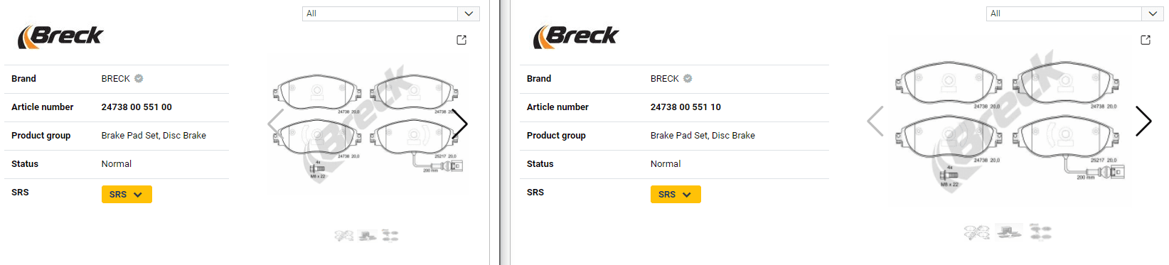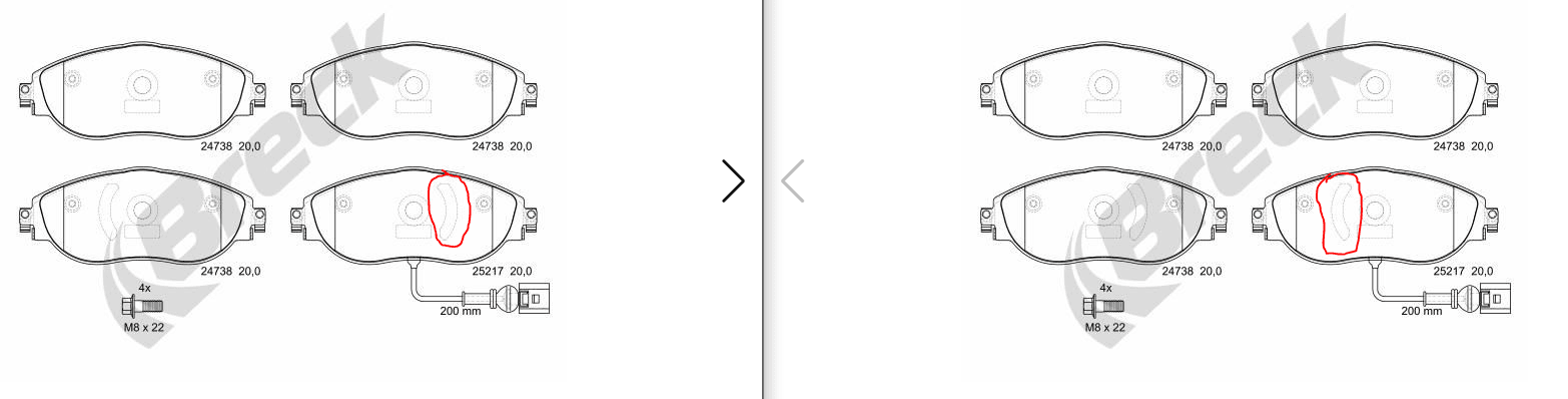 VAG in their wisdom changed the wear indicator sides from the LH side on the older Volkswagen Group A6 (PQ46) (Sharan) platform to the RH side on our newer MQB platform cars (Leon 5F) This means the pads are not interchangeable between the two (even though the back plates are dimensionally the same).
