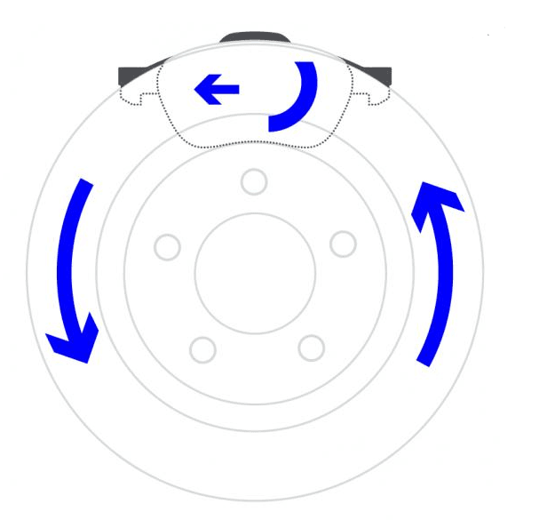 Whenever a brake pad has a crescent shaped cutout on it's anti-noise shim this is called a piston cutout, and its there to reduce the pressure on the pads leading edge to