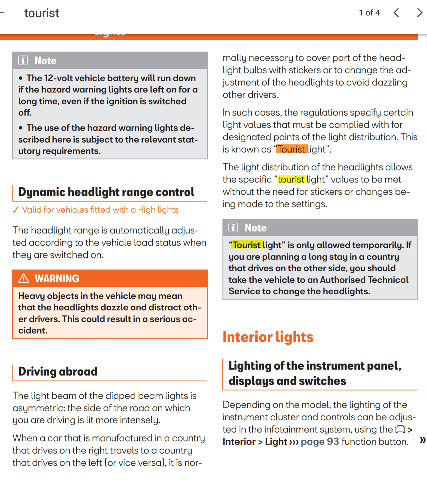 There is a tourist mode (tourist light) which detects driving on the other side accordingly and adjusts the beam pattern. The manual does say for long stays abroad you should get your headlights changed