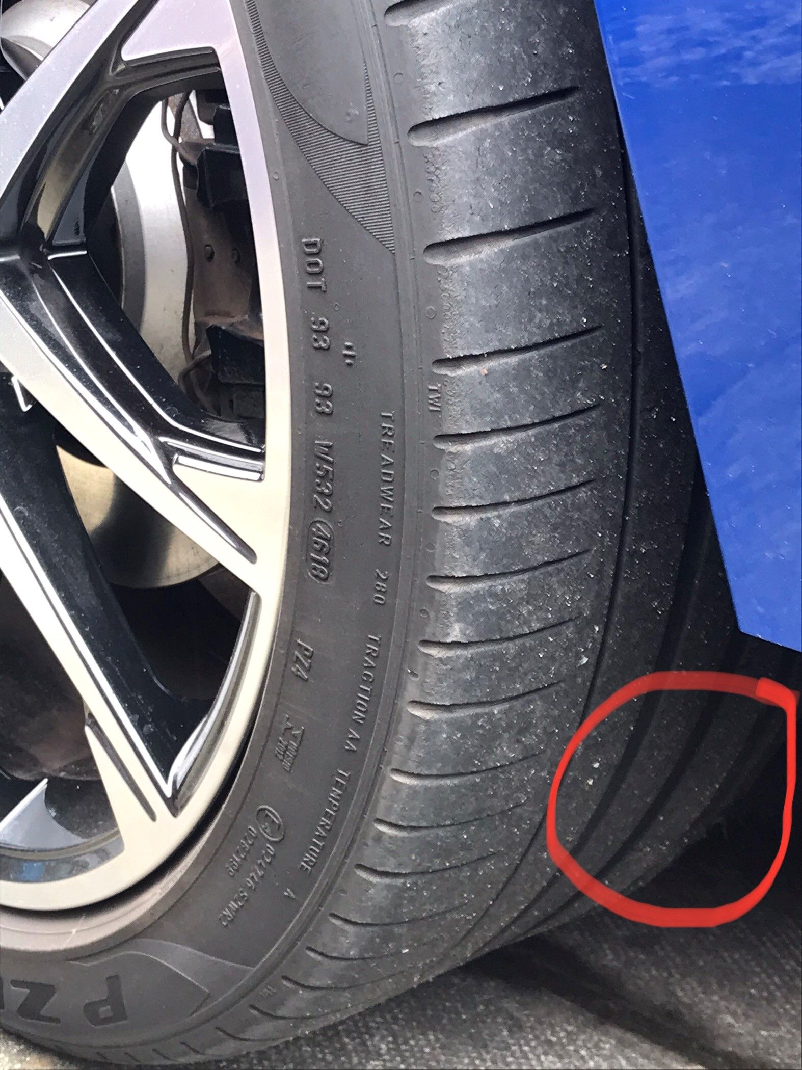 Any idea what could have caused this issue in just one spot on the tyre especially if they were supposedly checked only a 1000 miles ago?
