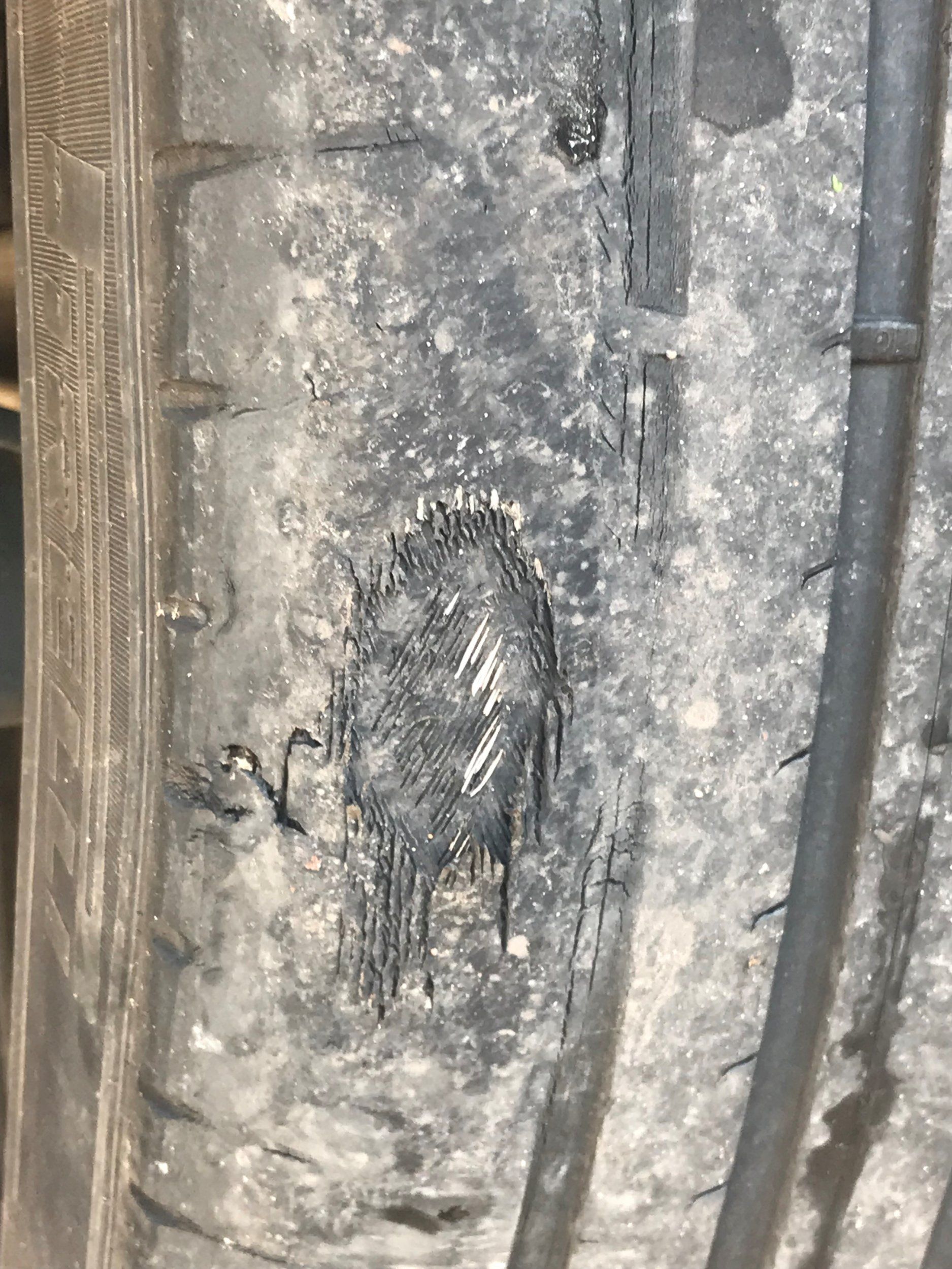 The rear tyre with the damage was very strange as it was only in one spot and all the tyres had worn very even across.