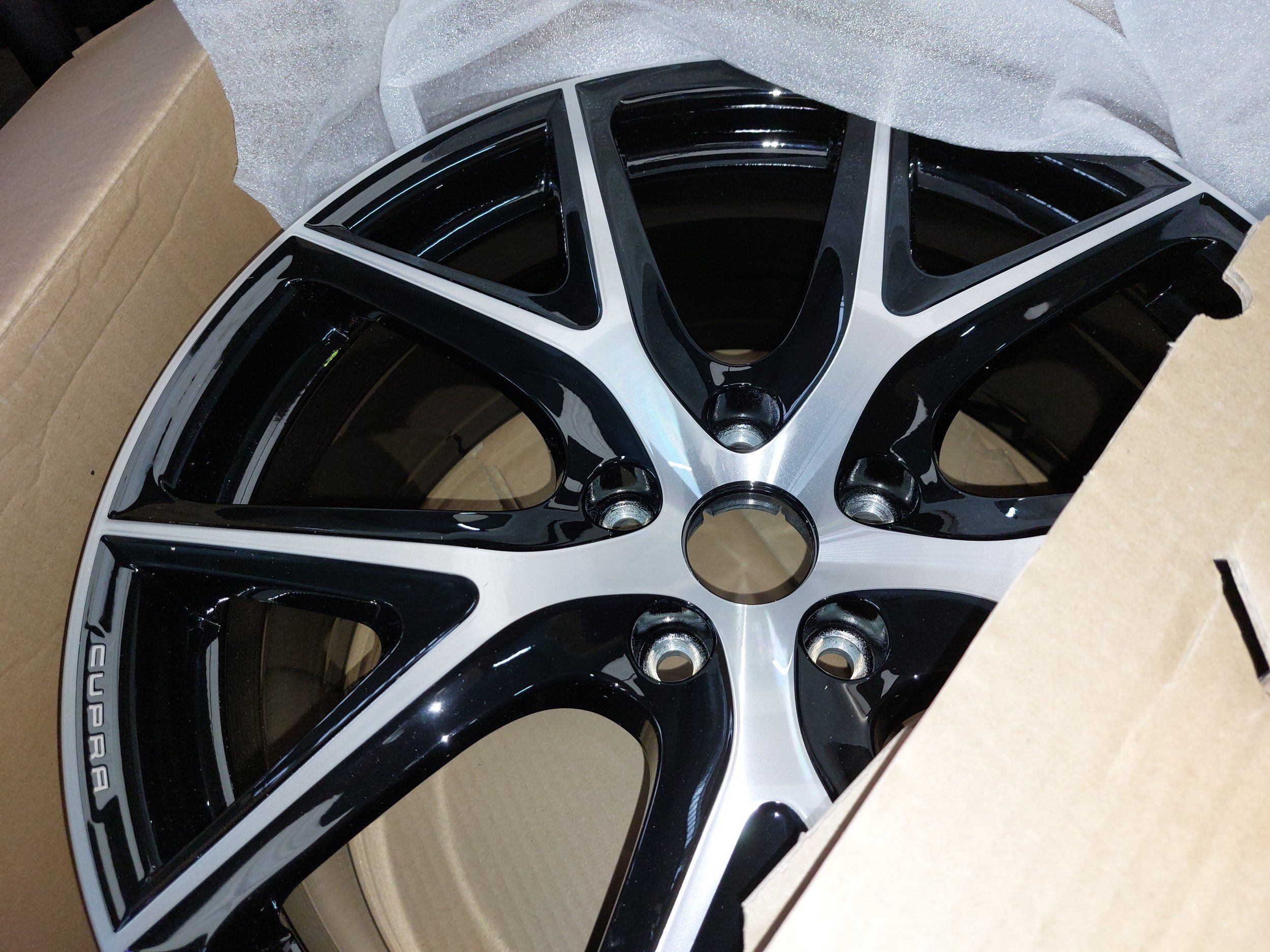 mk3 Leon Cupra like the ones below, they’re 8Jx19” with an offset of ET50 rather than ET45. An offset of ET45 is usually found on aftermarket alloys, so if yours are ET45 then it’s possible they may be replicas; if you remove one you can check the spec details, part number, manufacturer name etc. that will be stamped into the rear of the spokes.