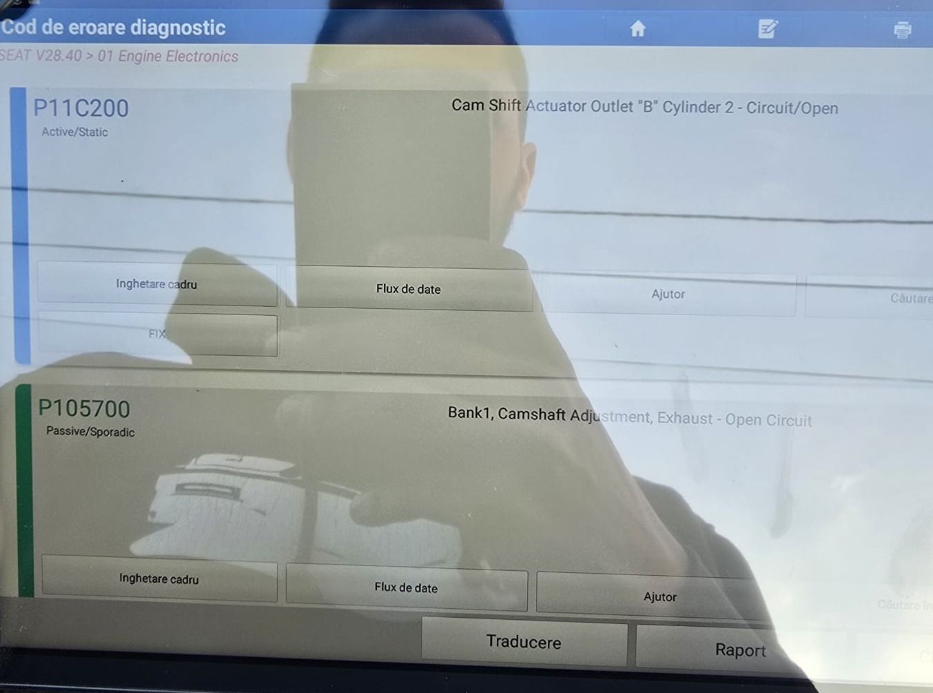 Error codes: P11C200 - Cam shift actuator outlet "B" Cylinder 2 - Circuit/Open