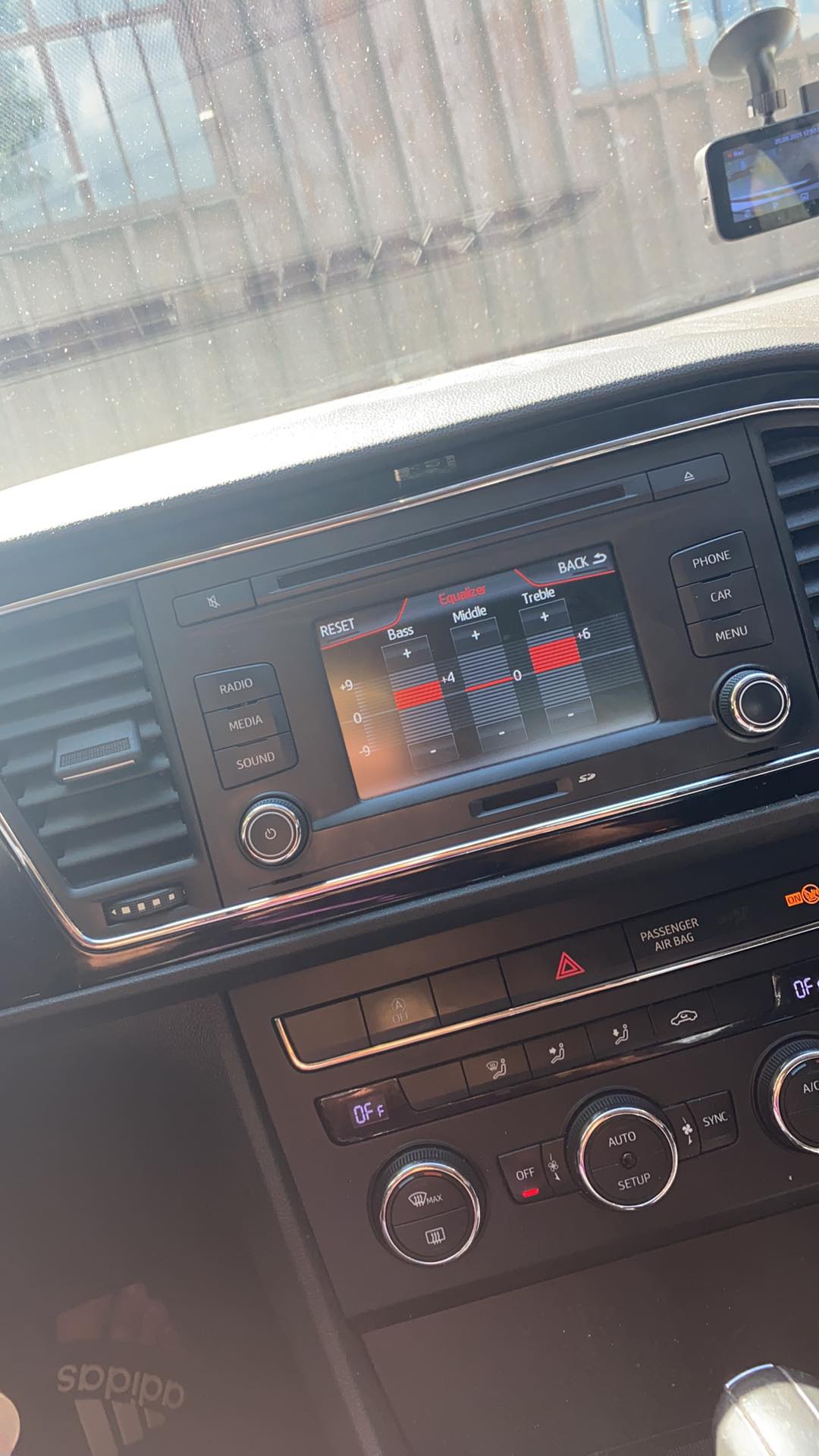 Hello! I also have a Seat Leon 3 5F from 2014, 1.6 tdi engine, and I have that simple navigation with 3 left and right buttons, and I would like to make some settings at the equalizer so that the sound can be heard better on the car and I don't know. I only have 3 things on the equalizer (Bass, Mid and Trebble). You can tell me some good settings to give quality sound. I will attach a picture of what it looks like