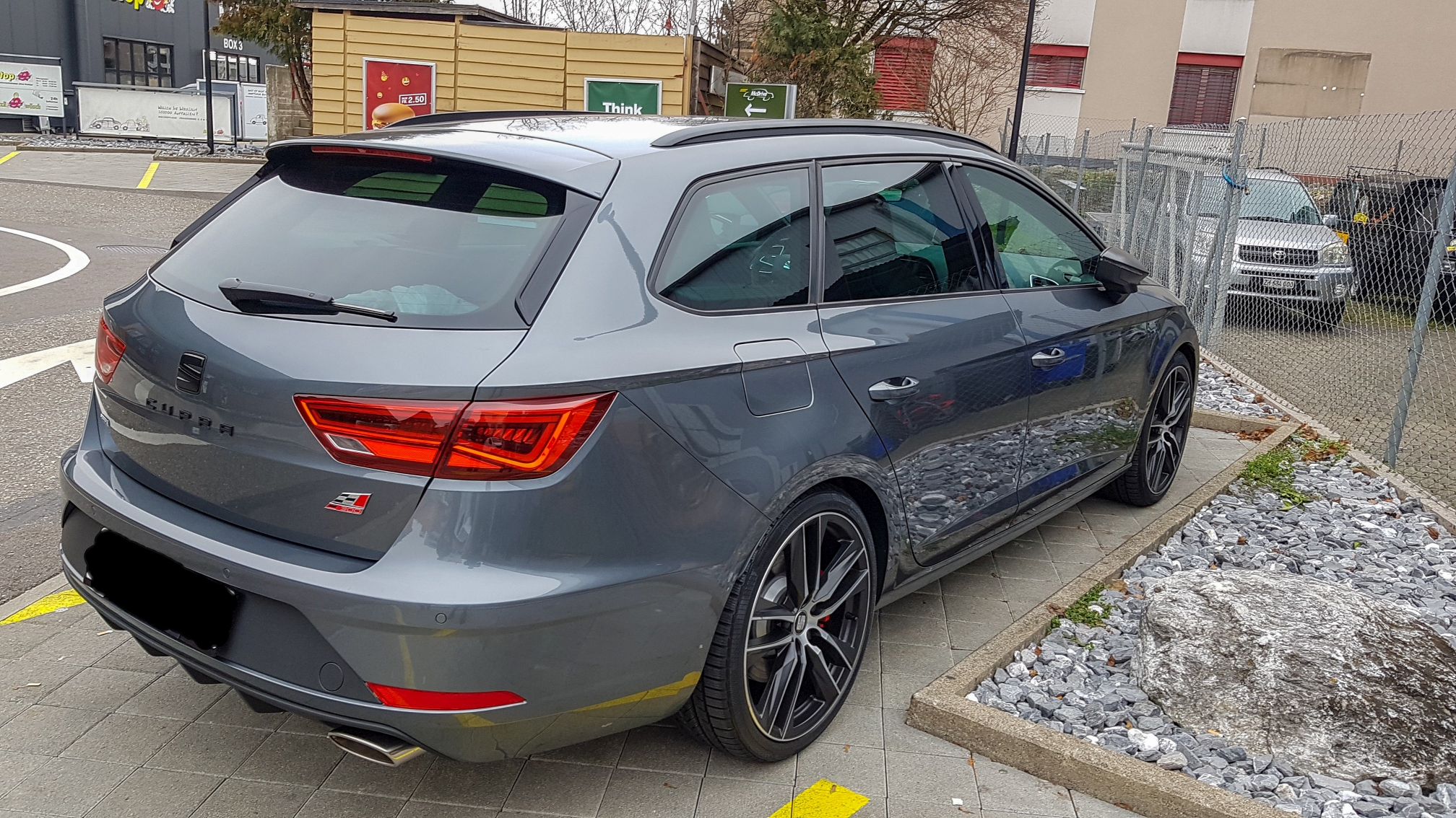 These are some quick ones with my phone but you can see the lovely Pirineos Grey colour (which I really prefer to the newer Magnetic Grey colour). I also had the matt black pack option on the car (alloys, external mirrors, roof railings and rear cupra logo) so I then bought some matt black front and rear Seat badges from RBstyling.com which really complete and complement the overall look imo https://rbstyling.com/de/automarken/seat/leon/leon-iii-5f-facelift-2017