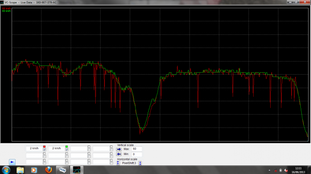 So I did a graph log on the car with the new sensor in (graph compares nearside rear (red) to offside rear (green). The Red line looks very erratic to me....