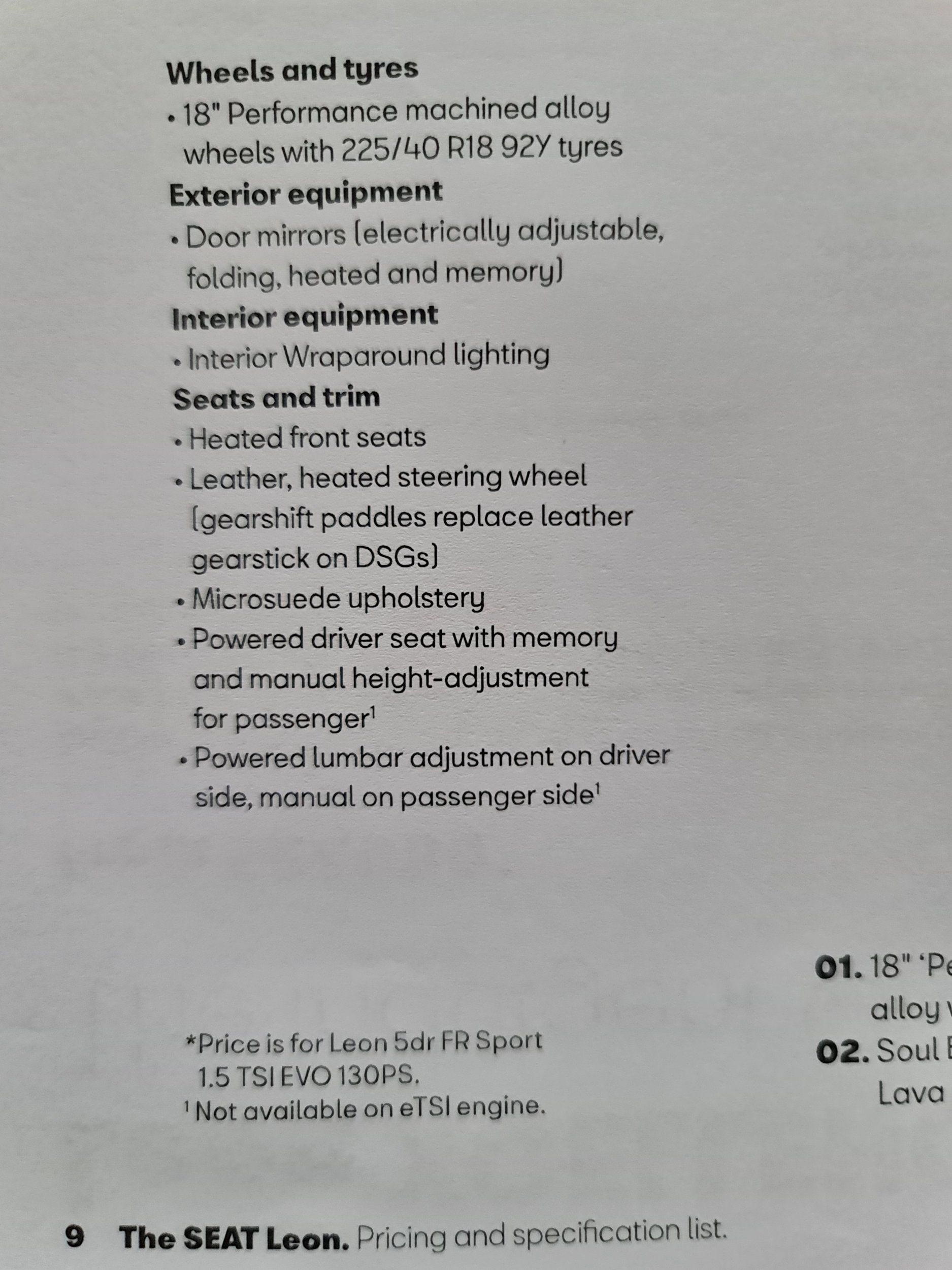 However, the little number 1 printed next to these, in the brochure, apparently means that it is 'Not available on eTSI engine'. The way I read this is that I will not be getting a powered drivers seat.