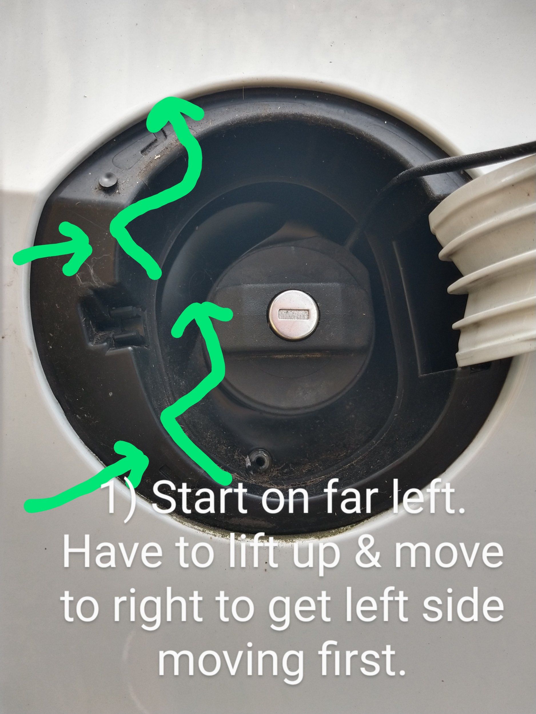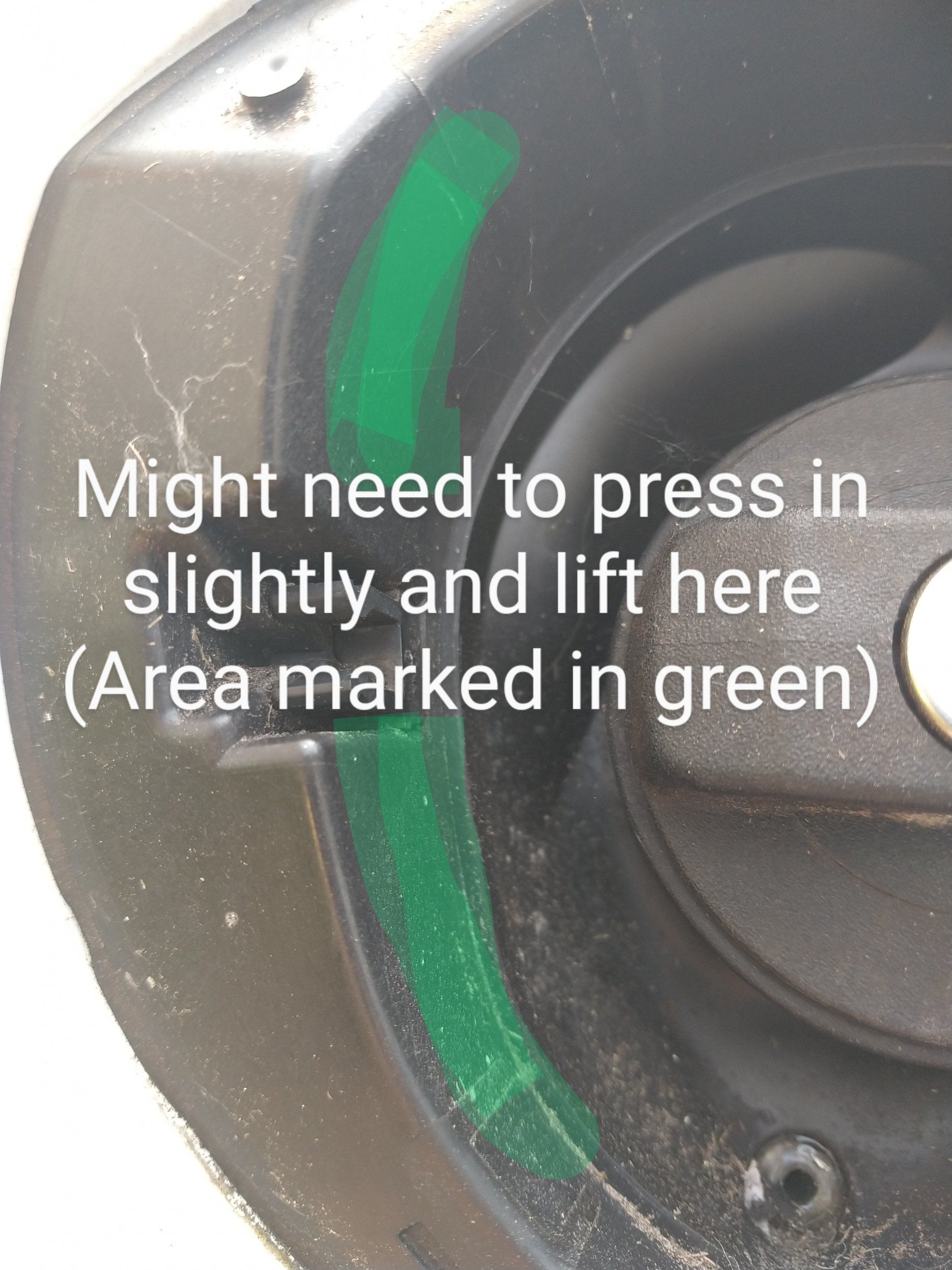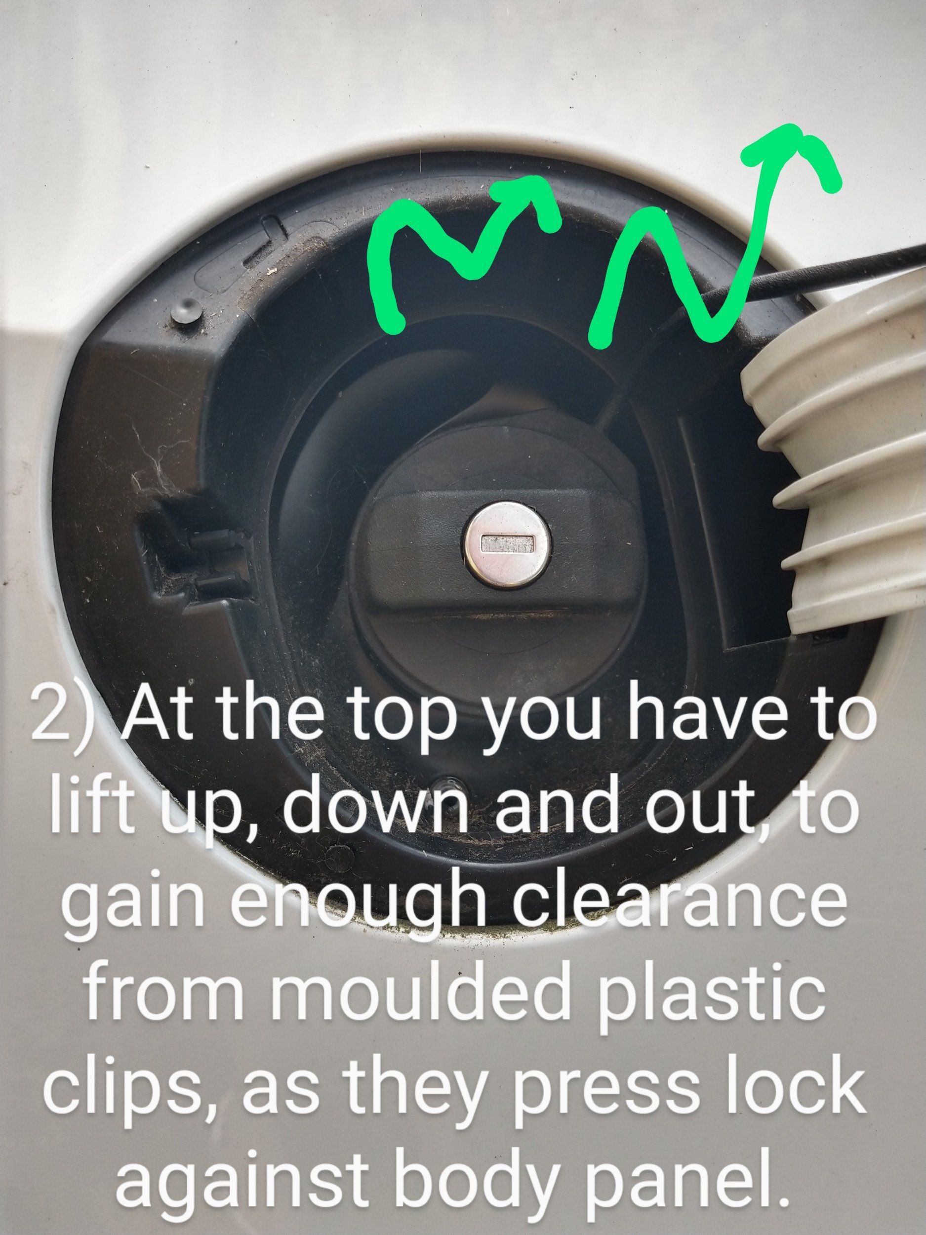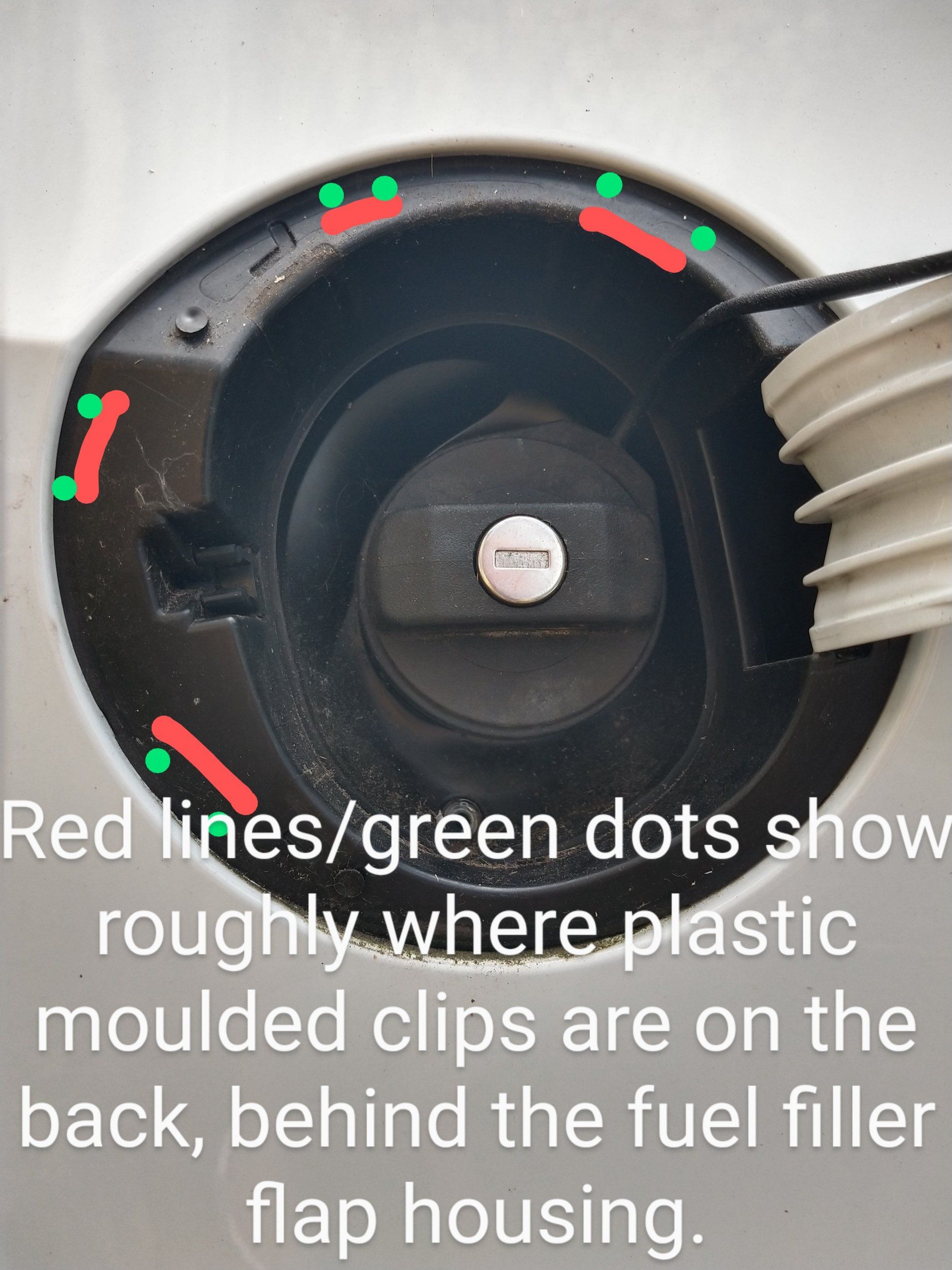The bottom area has a recess ridge that I think just rests/presses against the panel. Once you've got the pressure off the two top and two far left clips, you'll then have to start lifting the rubber boot section off the fuel neck, while at the same time moving the hinge box section out that sits in a rectangular recess in wing panel. The whole fuel flap housing should lift out then.