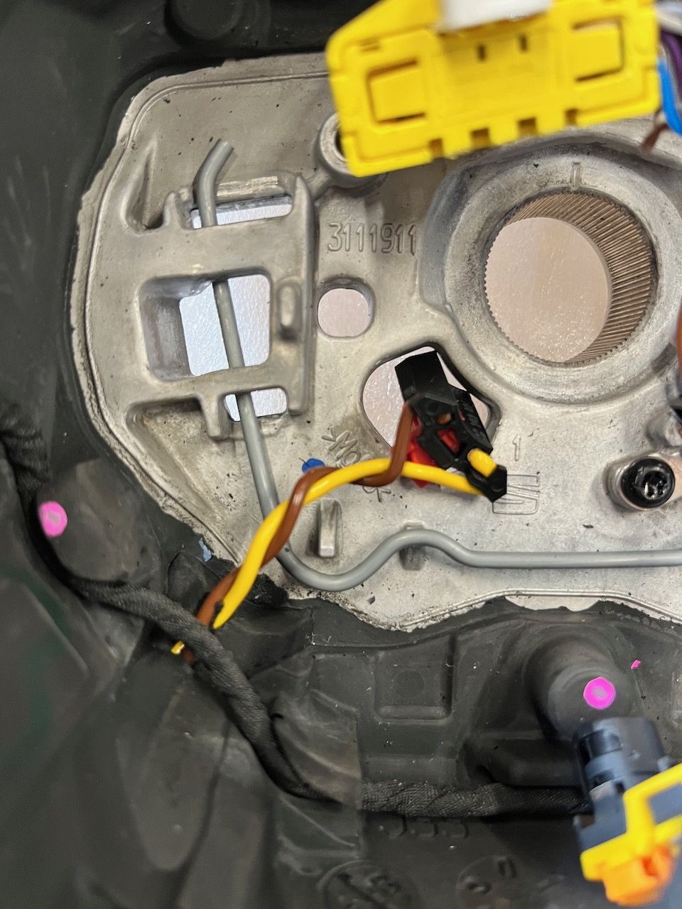 - Fit the small wiring loom to the new steering wheel. **Depending on how it's wired you may need to move the blue horn feed wire from the small multiplug in the wheel to the yellow airbag multiplug to allow the horn to work. It's dead obvious when you compare the loom with the loom from the original steering wheel - use that as reference because the wire colours are different.**