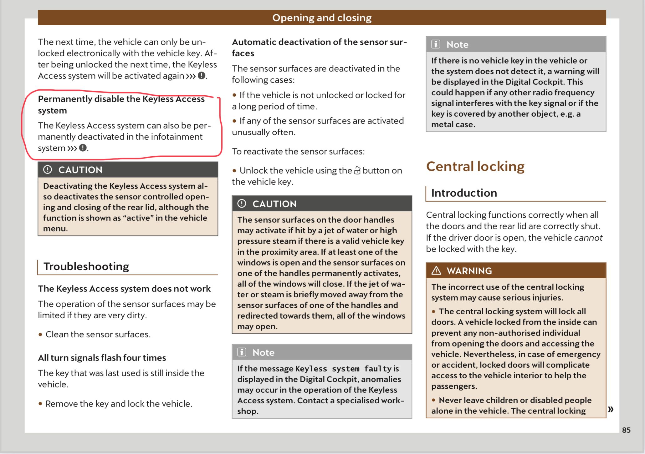 > If the central locking system is operated using the convenience key functions, the four aerials (R137, R138, R200, R201) communicate at a frequency of 125 kHz.