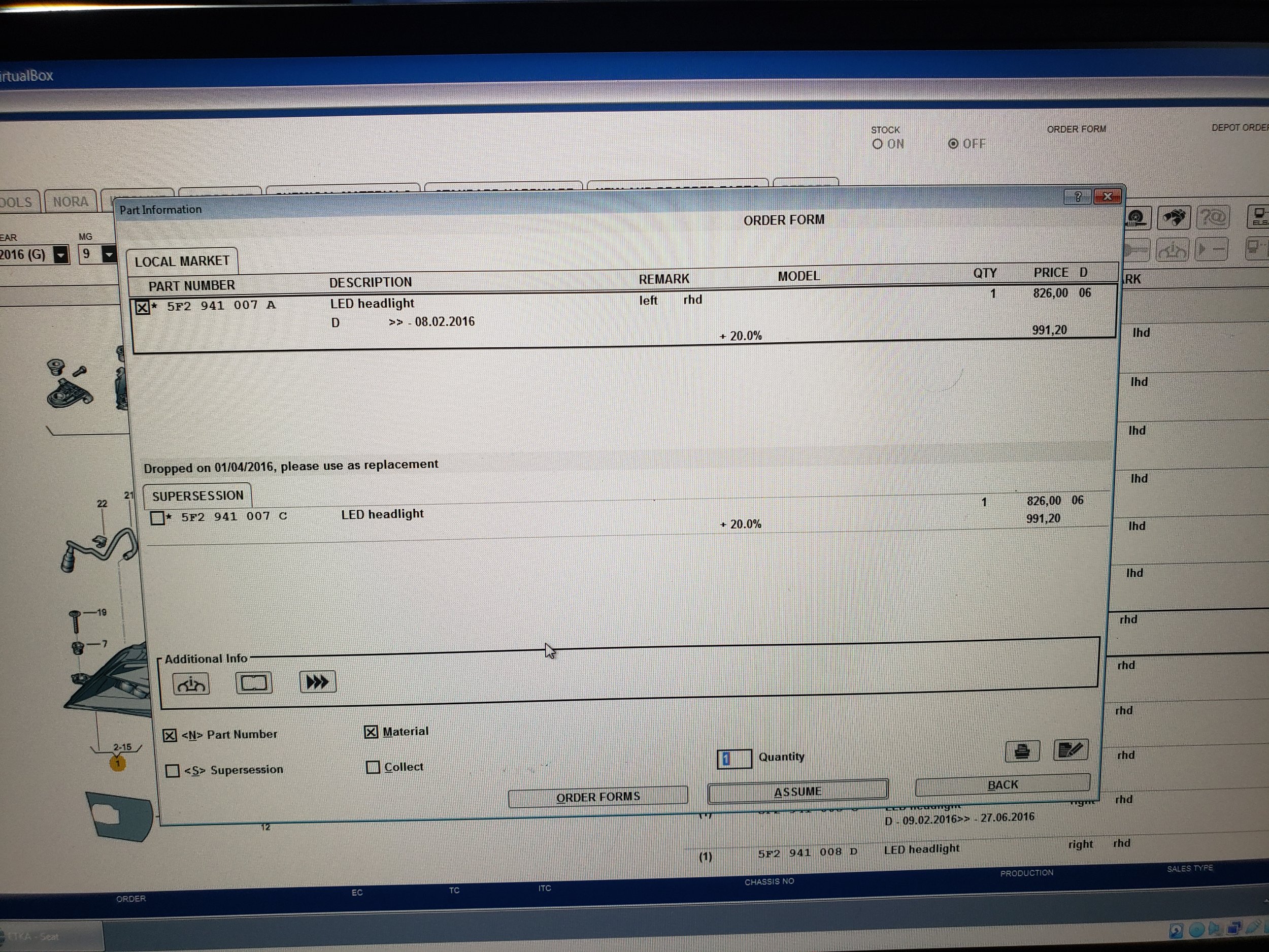Parts catalog lists the headlight part number for your VIN as 5F2941007A.