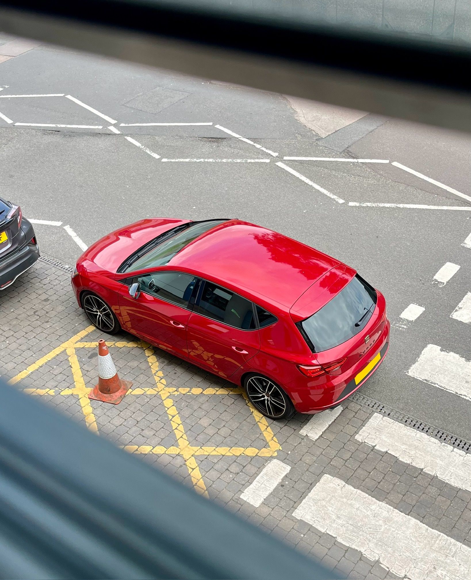 Nah, it’s okay. Any public council road and I’d agree with you. I’m in maternity assessment unit. There’s hardly any spaces here. People have to park wherever they can for the sake of their pregnant partners and children, speaking from experience. I’ve moved that cone before and parked on the yellow box… Priorities!