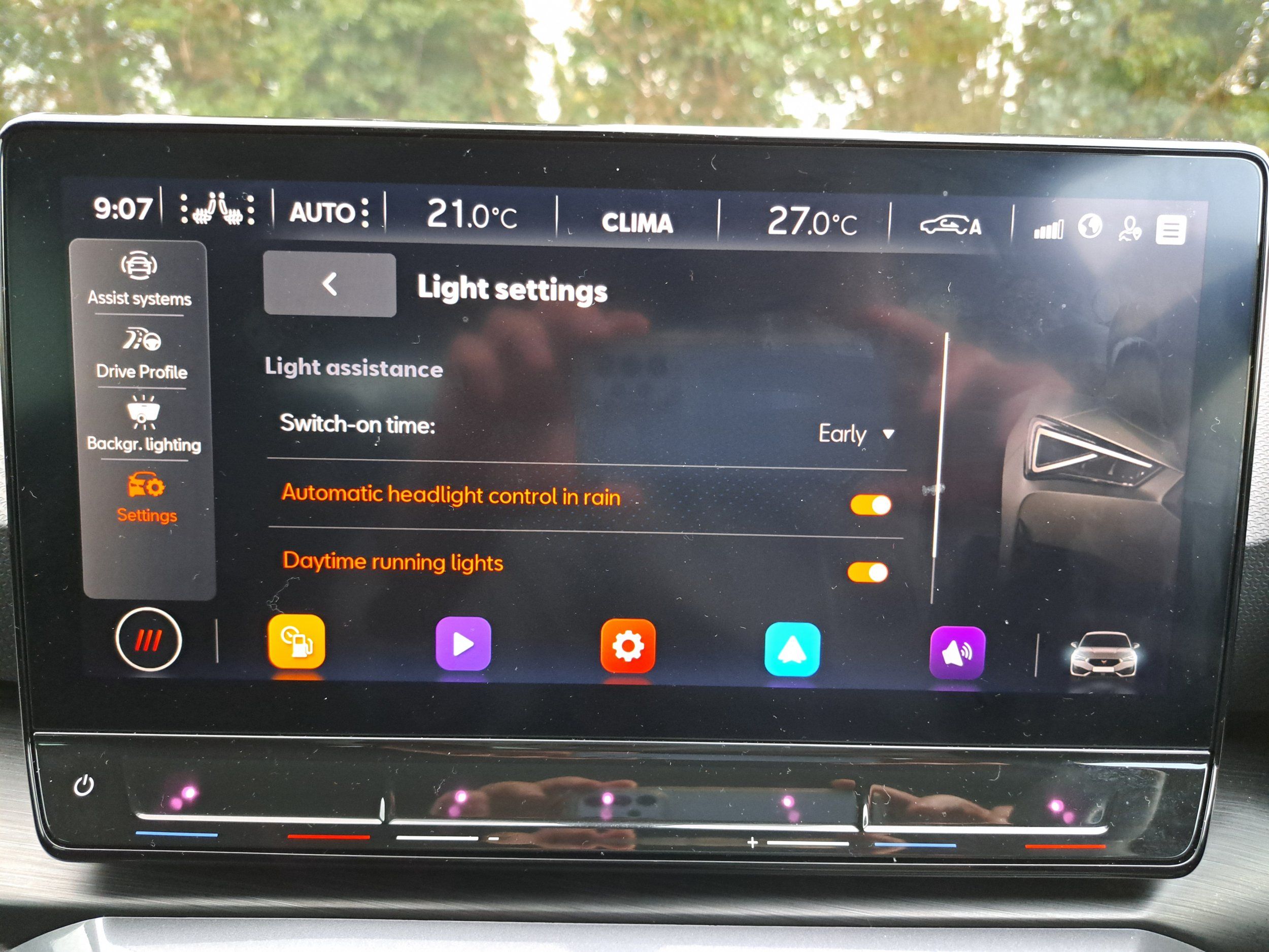 That's the setting, but the headlights and hence the indicators on the lighting panel will still only light up when it starts to get dark. I've got mine on 'late' but the headlights still come on almost an hour before full dark.