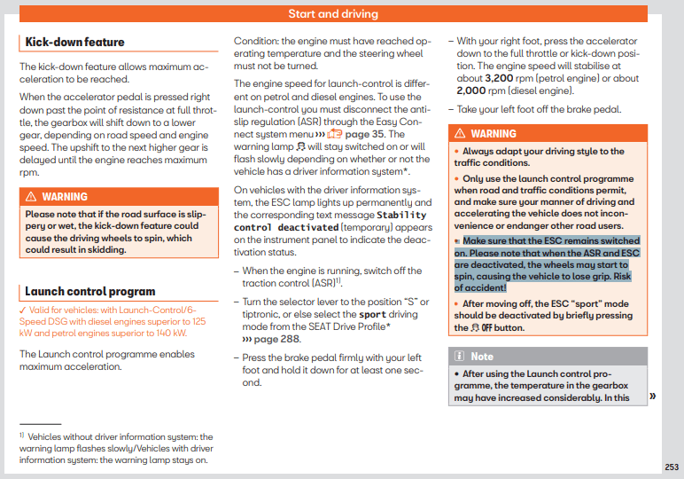 Pull up to line, switch to cupra mode (I generally don't drive on Bolton roads in Cupra mode as I have vertebrae that I would like still intact..), press and hold the ESC/TC button on the dash for 5 seconds - ESC OFF. LC activated. Tyres melted..