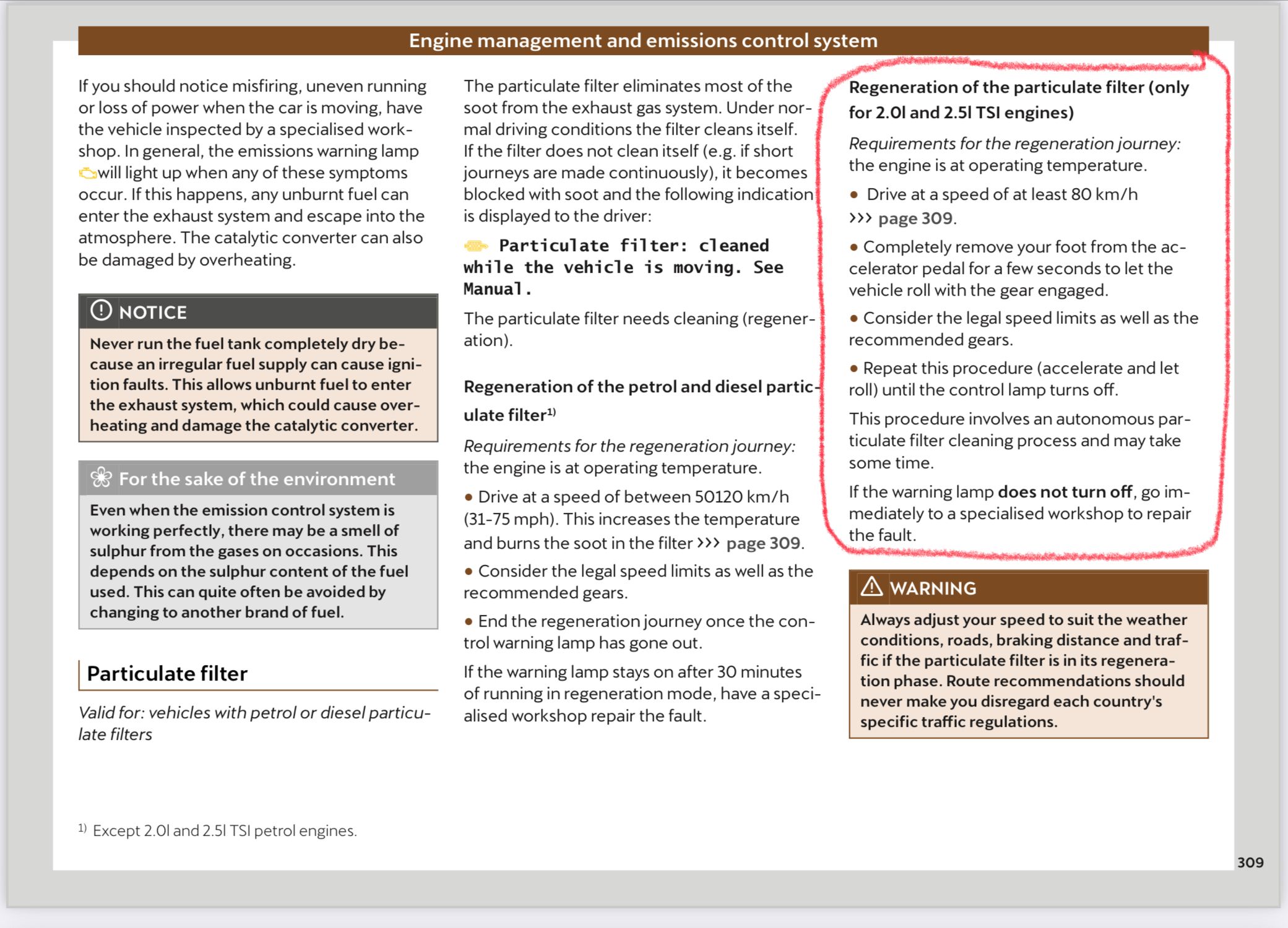 It’s under ‘Particulate Filter’ in the owner’s manual - page 309 in the June 2022 edition. If yours is a different print date, the particulate filter section might be on a different page, so check the index at the back of the manual for the page number.