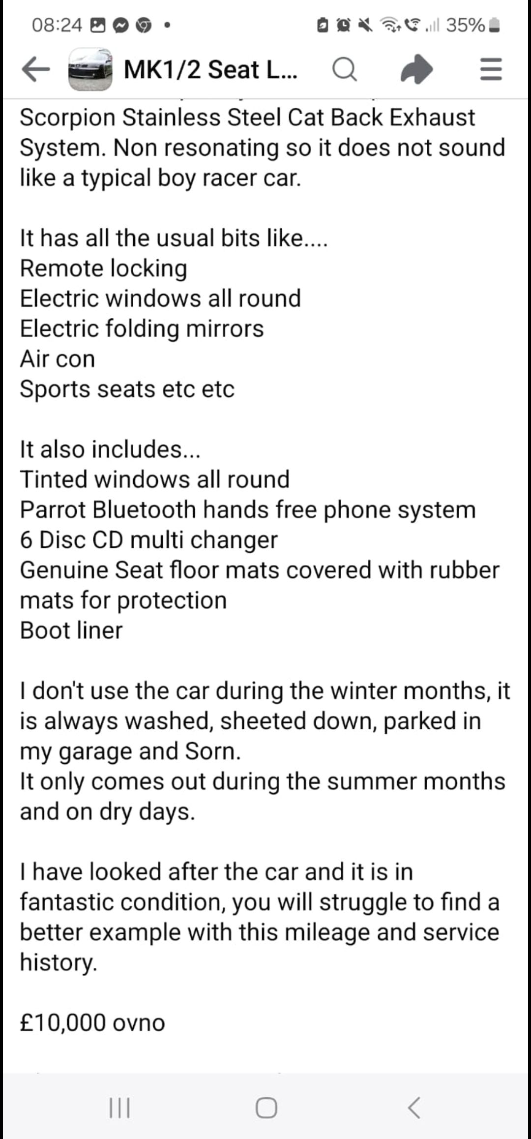 I'm on the lookout for a mk1 cupra r to buy. If anyone has seen any adverts or has one for sale etc please let me know. I'm looking for a stock one. Also wondering what I'd be able to get for about £7500-£8500 ie mileage, condition. I've seen one for sale at 8k with 78k miles, is that a good price? Any help is appreciated