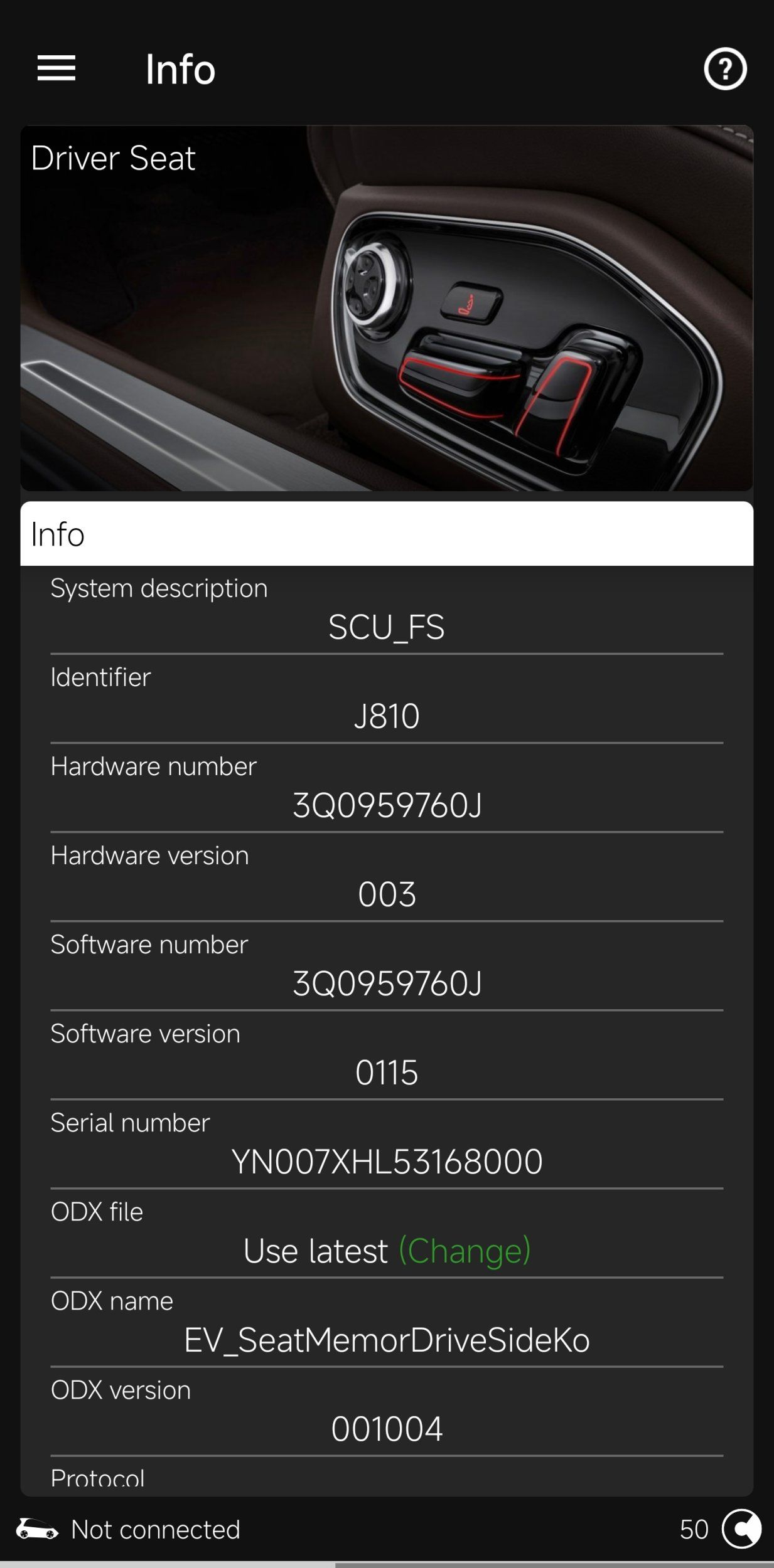 Anyway, I looked around control units using OBD11 and found an inactive "seat memory driver" entry in Telematics unit that I thought might be related, you can see it in the attached screenshot.