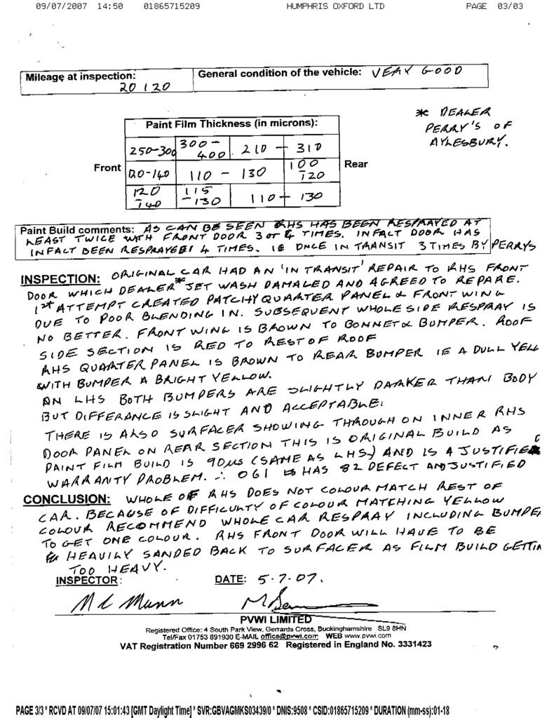 Funny you had your inspection at Perry's in Aylesbury Joonspoon. They told me they don't deal with paintwork when I went there for my
