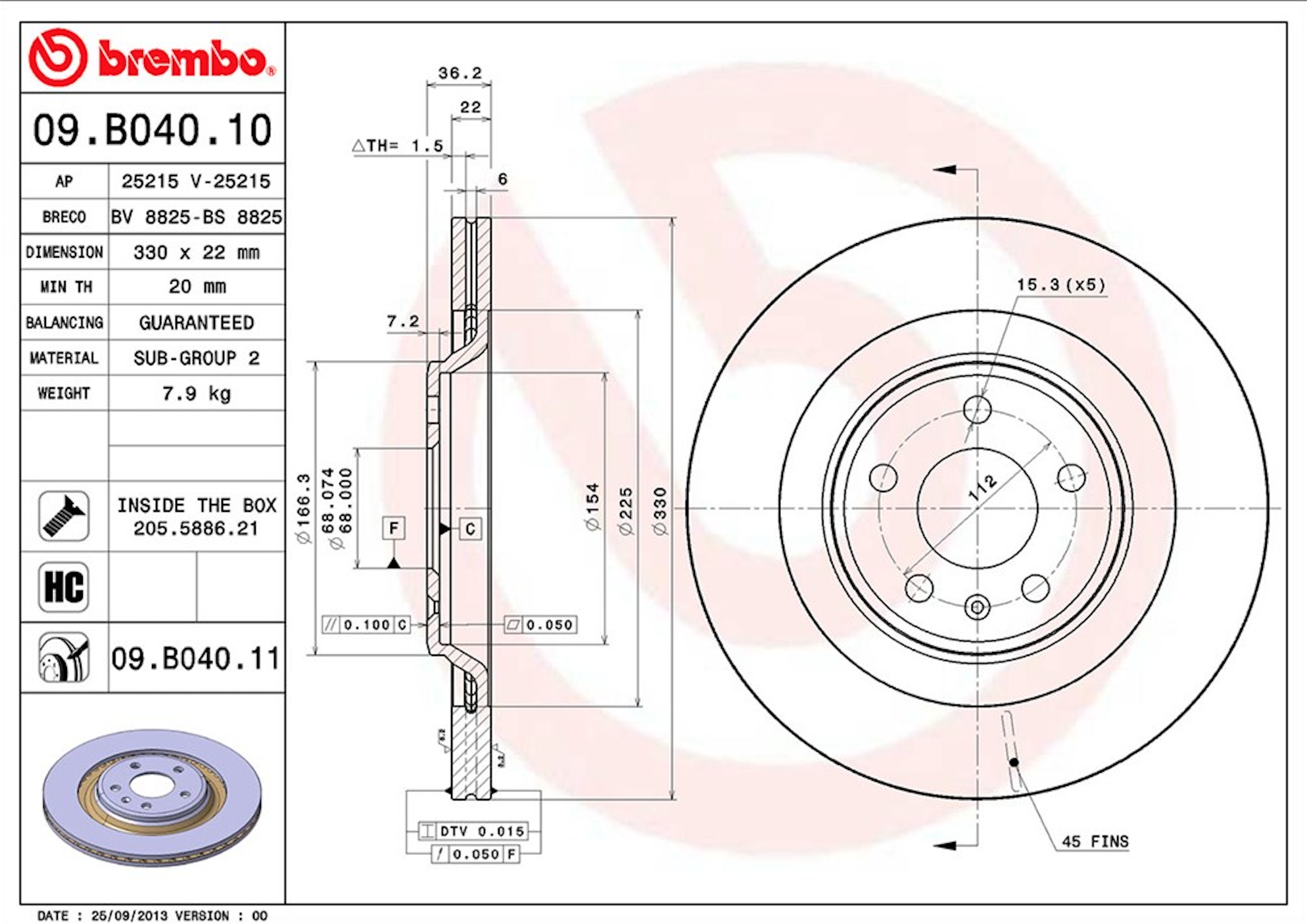 366mm front rotors with PCD change: 170€