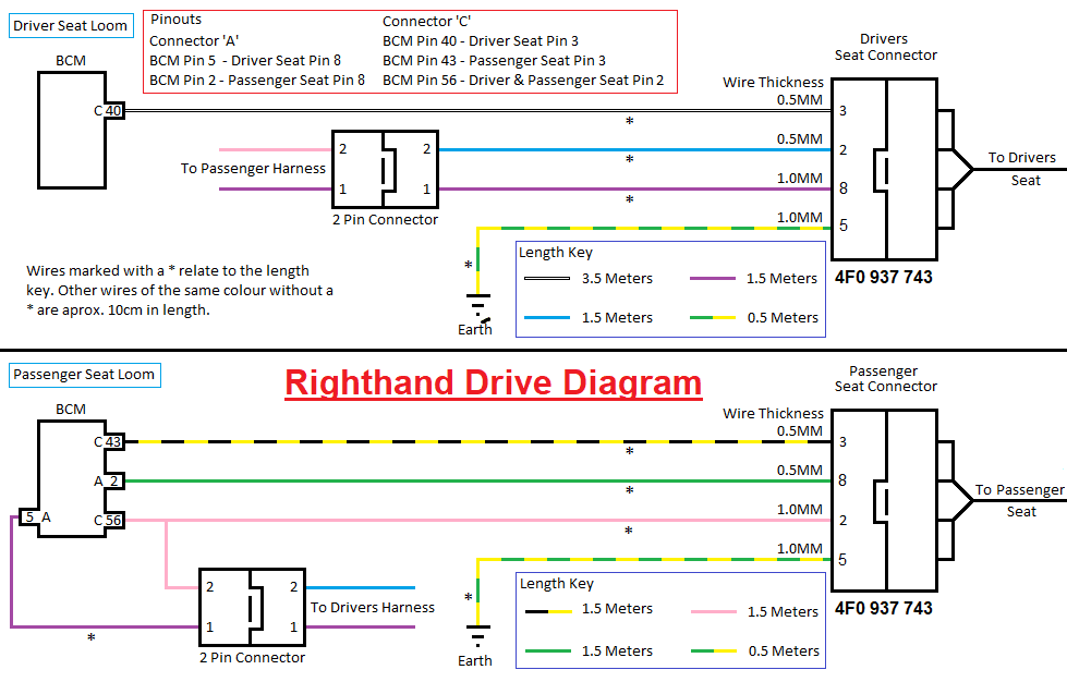 These are all the wires under my seat. Sorry for the bad pictures, screenshotted from a video.Why buy the Kufatec garbage? Why not buy the Erwin connection? Seat heating uses a total of four wires. The airbag is separate anyway, a yellow connector, and the third two-pin connector is for the seat belt control.