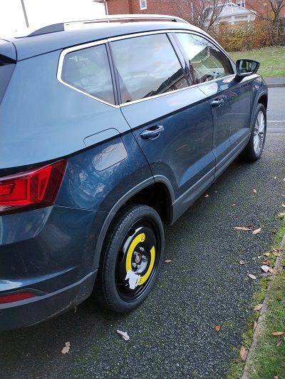 I found my tyre flat on my driveway, so didn't actually drive on the space saver, just fitted it so I could take my wheel to the garage to get plugged. Still very handy to have though. I also like all the storage space in the foam inserts. I carry loads of spares in there (fuses, an extending wheel brace, electric tyre pump, water, high viz vest etc).