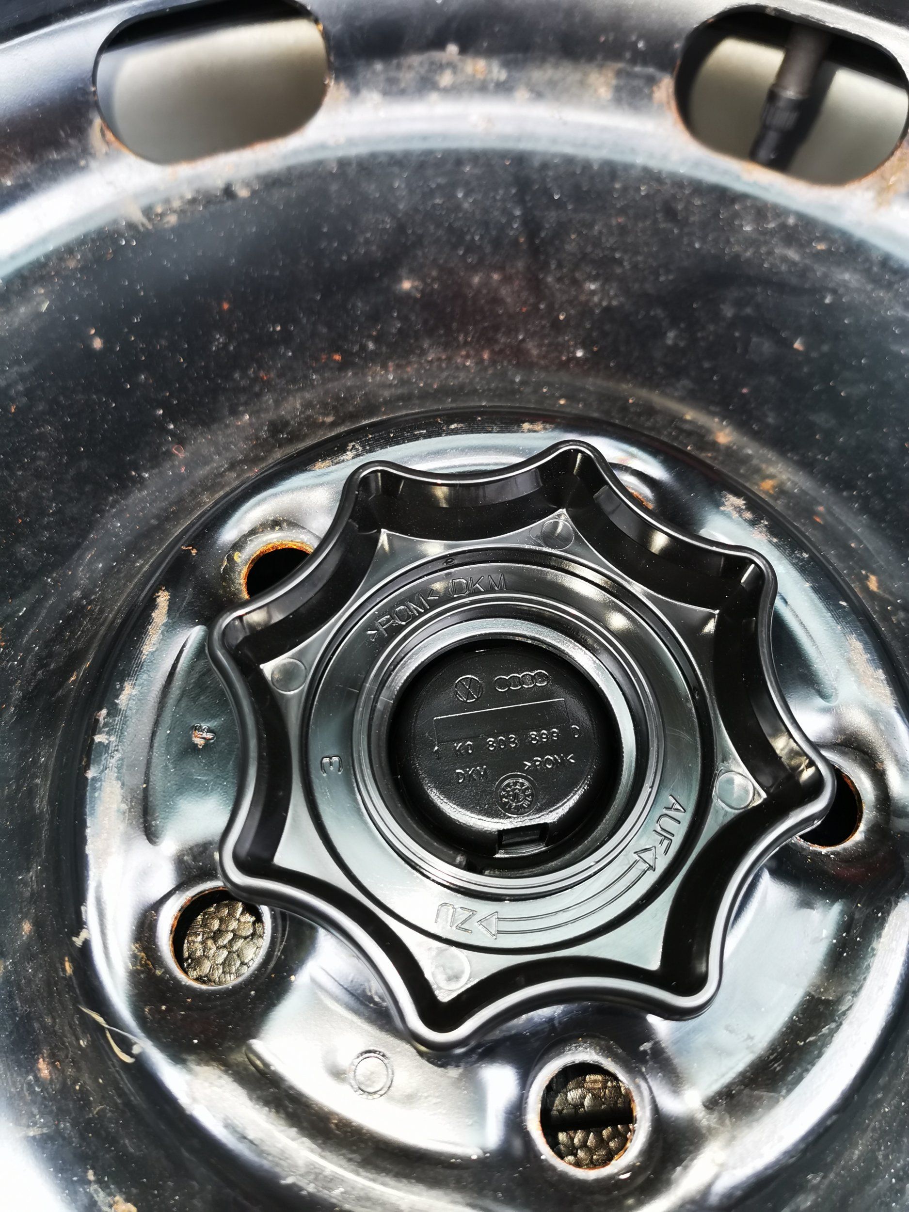 Mk7 Golf one. Or, get a spare alloy. Fits in the hole and you don't need to drive under 50mph. Fit it and forget it until you can get the puncture fixed.