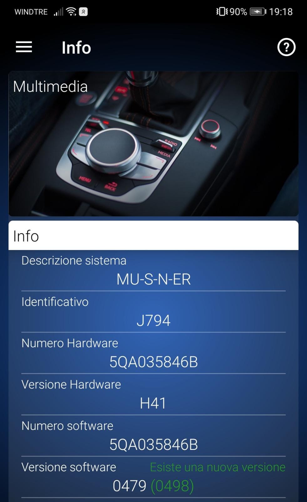 obd11 mi indica un nuovo aggiornamento h41 mib2 std zr eu 498