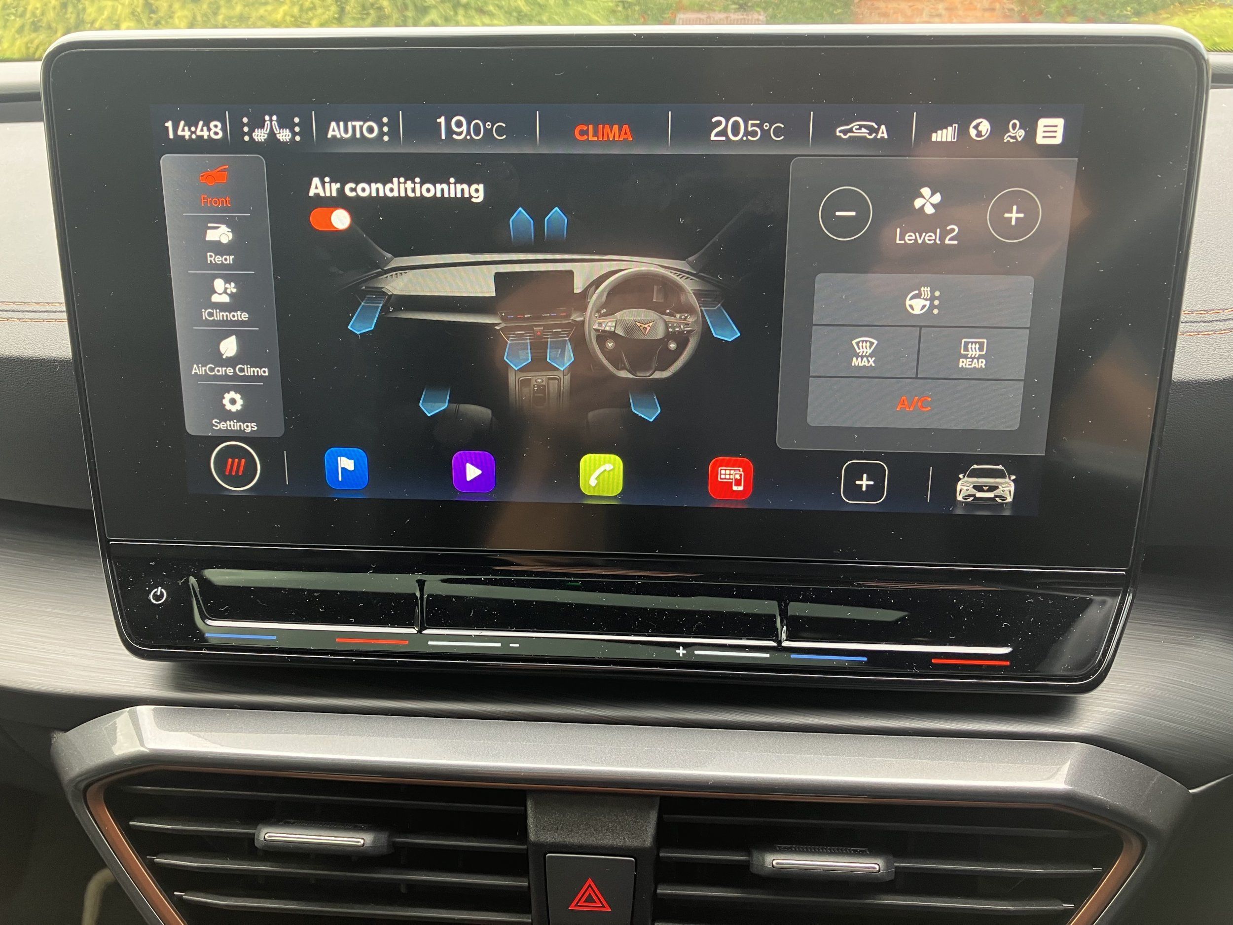 That screen confused me also! As in why there were two buttons for air conditioning. The top text should really read "Climate Control" or similar as Air Conditioning is a specific component of the CC which can be controlled independently.