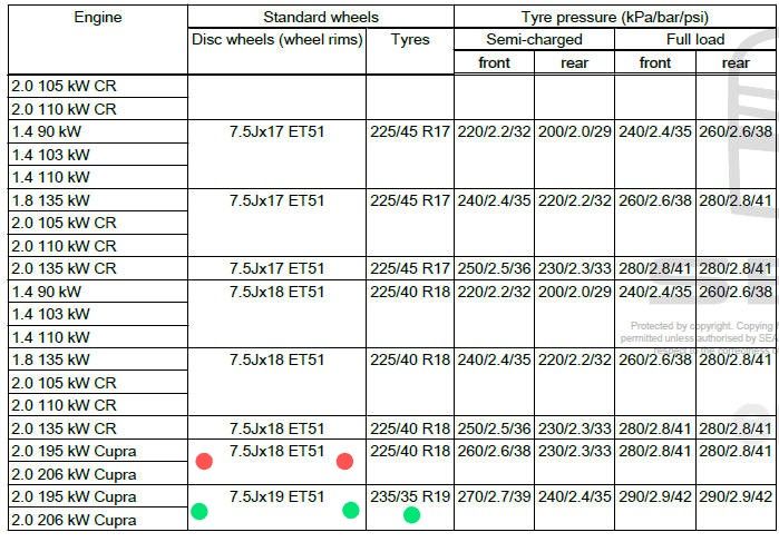 I live in Sweden so I'm rolling on winter tyres half the year, which is a change from 235/35 R19 (summer) to 225/40 R19 (winter). Do I need to consider anything else here or just match the specified pressure written on the fuel flap?