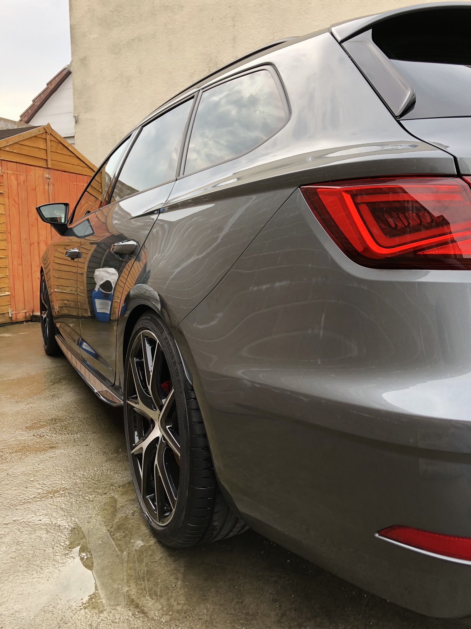 Ha anyone got any pics of their cars with rear spacers fitted? I'm thinking of doing rear-only, and it sounds like somewhere between 10-15mm is the way to go, but I'd like to see what they look like before I commit. The rear look tucked in too much for my liking at the moment, but I don't want to do too much that they'd either rub or look stupid (wheels outside arches etc).