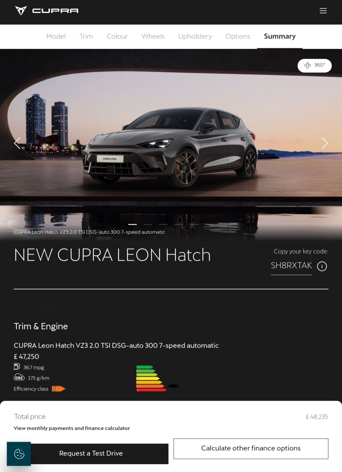 | VZ3 | CUPRA Leon Estate VZ3 e-HYBRID DSG-auto 272 | 10 | 5% | £50,185.00 |