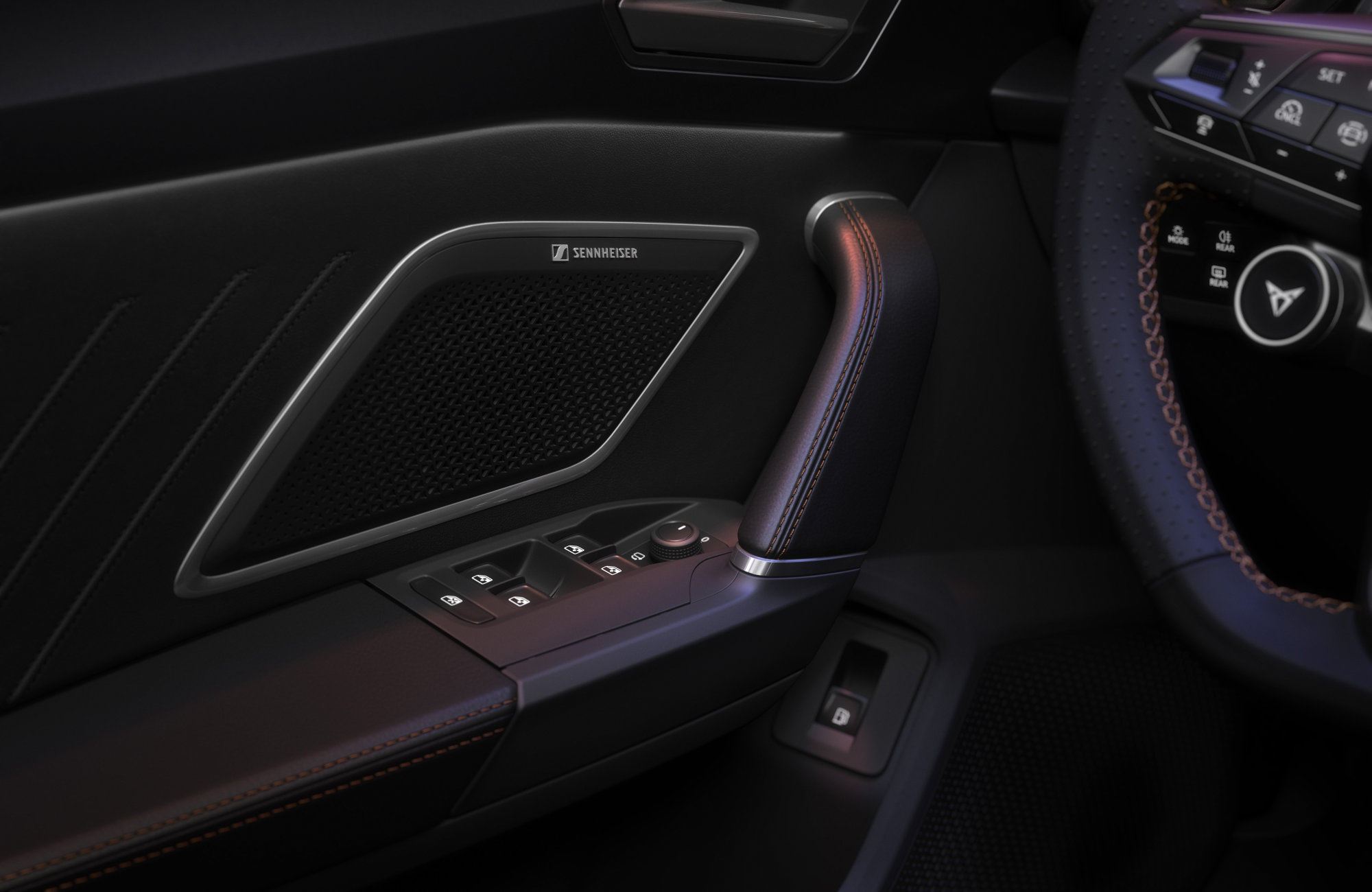 The CUPRA Leon integrates a new high-fidelity 12-speaker audio sound system developed in collaboration with the audio experts of Sennheiser Mobility on the VZ3 trim. The high-powered 425-watt system immerses the driver and the passengers in a unique sound experience. It’s an audio technology that incorporates Sennheiser’s AMBEO Concerto software, able to distil fundamental components of music, including different instruments and room information, redistributing them throughout the car.